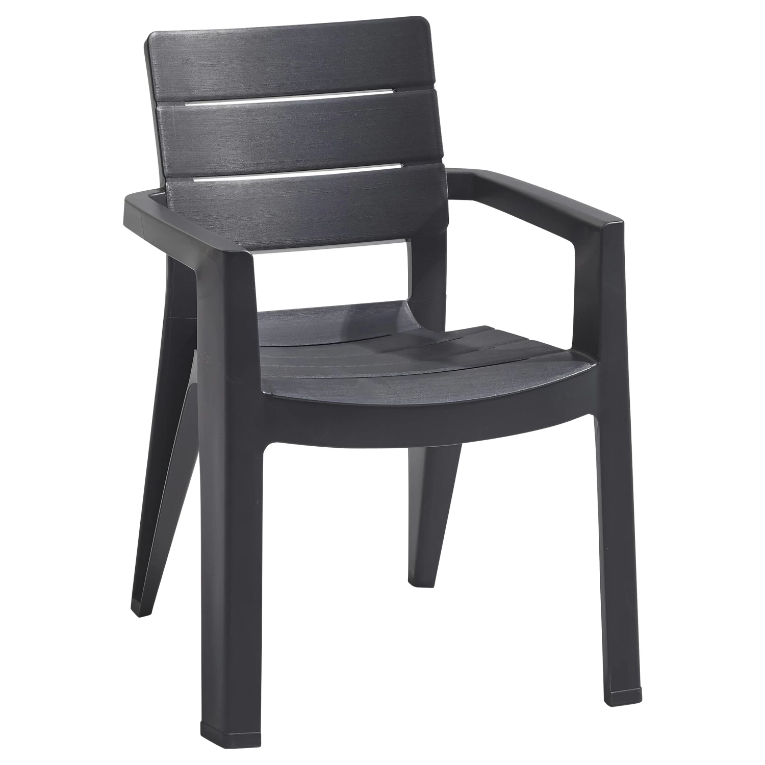 Allibert maakt stoelen waarbij elegantie en degelijkheid hand in hand gaan. Kijk maar naar de stoel Ibiza: de stapelbare stoel bestaat uit een lichte kunststof in de kleur grafiet waarin je toch stevig zit. Verkrijbaar in verschillende kleuren.