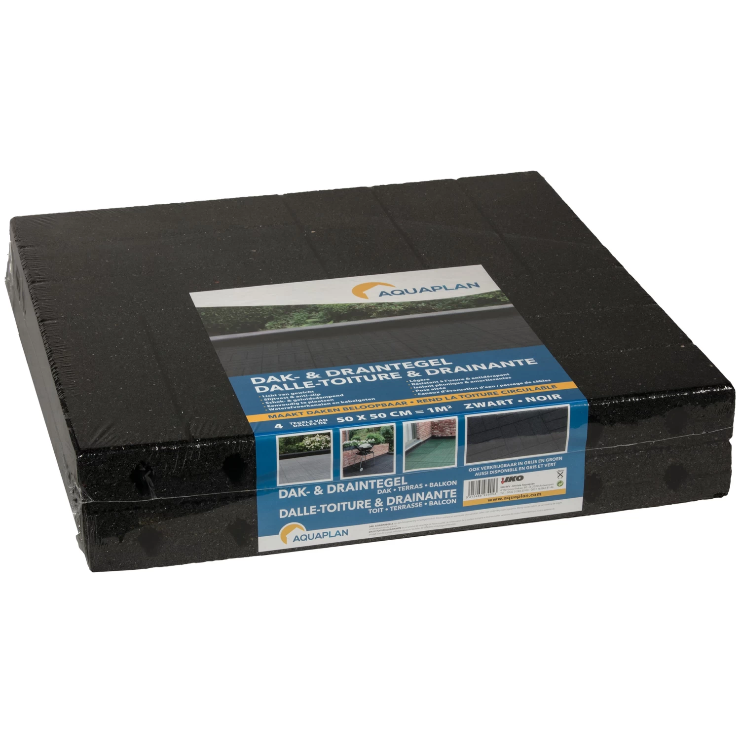 Opzoek naar mooie en stevige tegels voor op een dakterras? Ga dan voor Aquaplan dak-/draintegel zwart 50x50cm 1m² 4 stuks. Deze rubberen tegels zijn zwart van kleur en hebben een authentieke tegellook en zijn ideaal als ondergrond voor je dakterras of het beloopbaar maken van daken. Met deze tegels vermijd je bovendien beschadigingen aan je dakbedekking wanneer je er bijvoorbeeld regelmatig overheen loopt. De tegel is gemaakt van hoogwaardig rubber, wat ervoor zorgt dat de tegel slijt-, rot- en vorstvrij blijft. Kortom: decoreer en bescherm je dakterras met deze daktegels van Aquaplan.