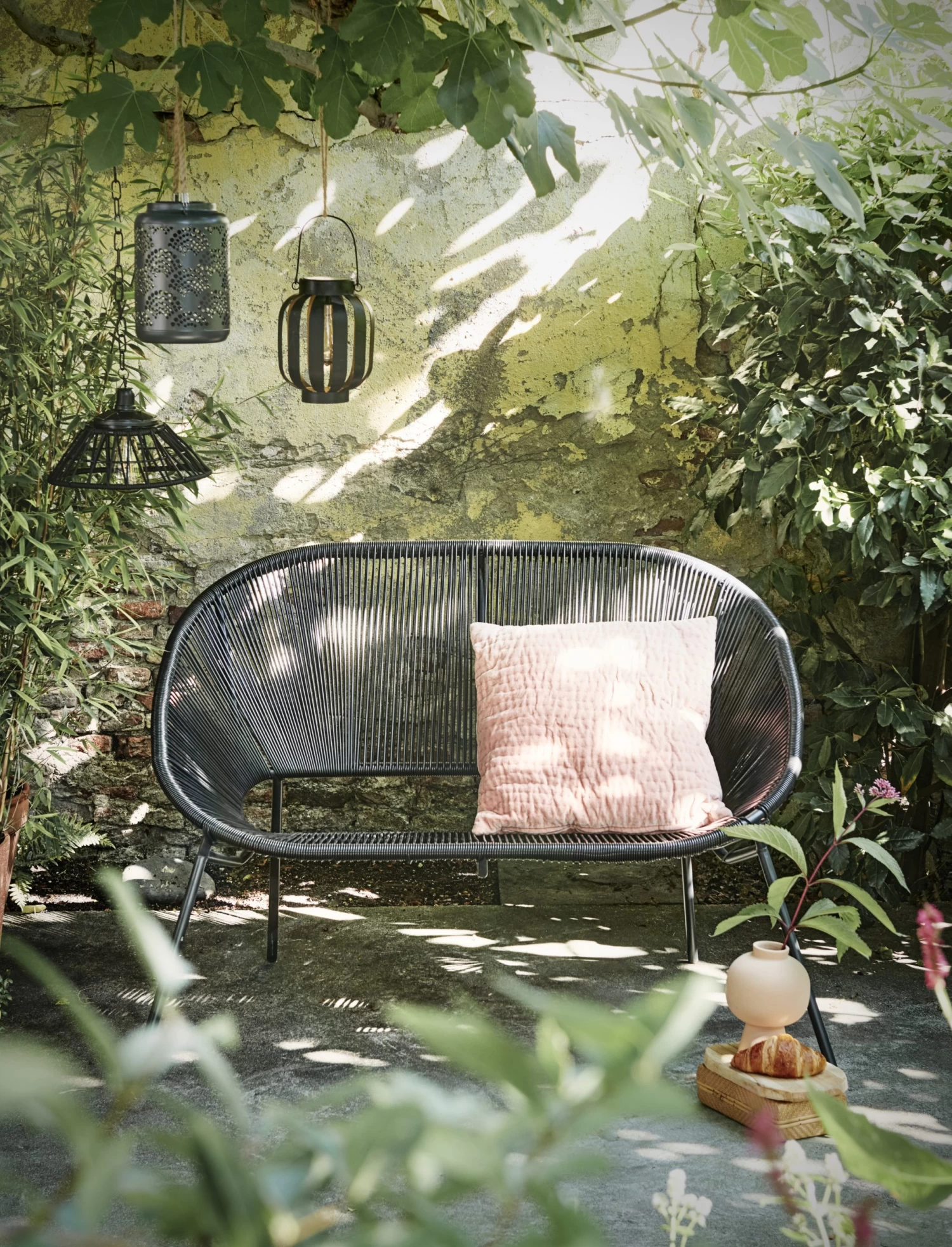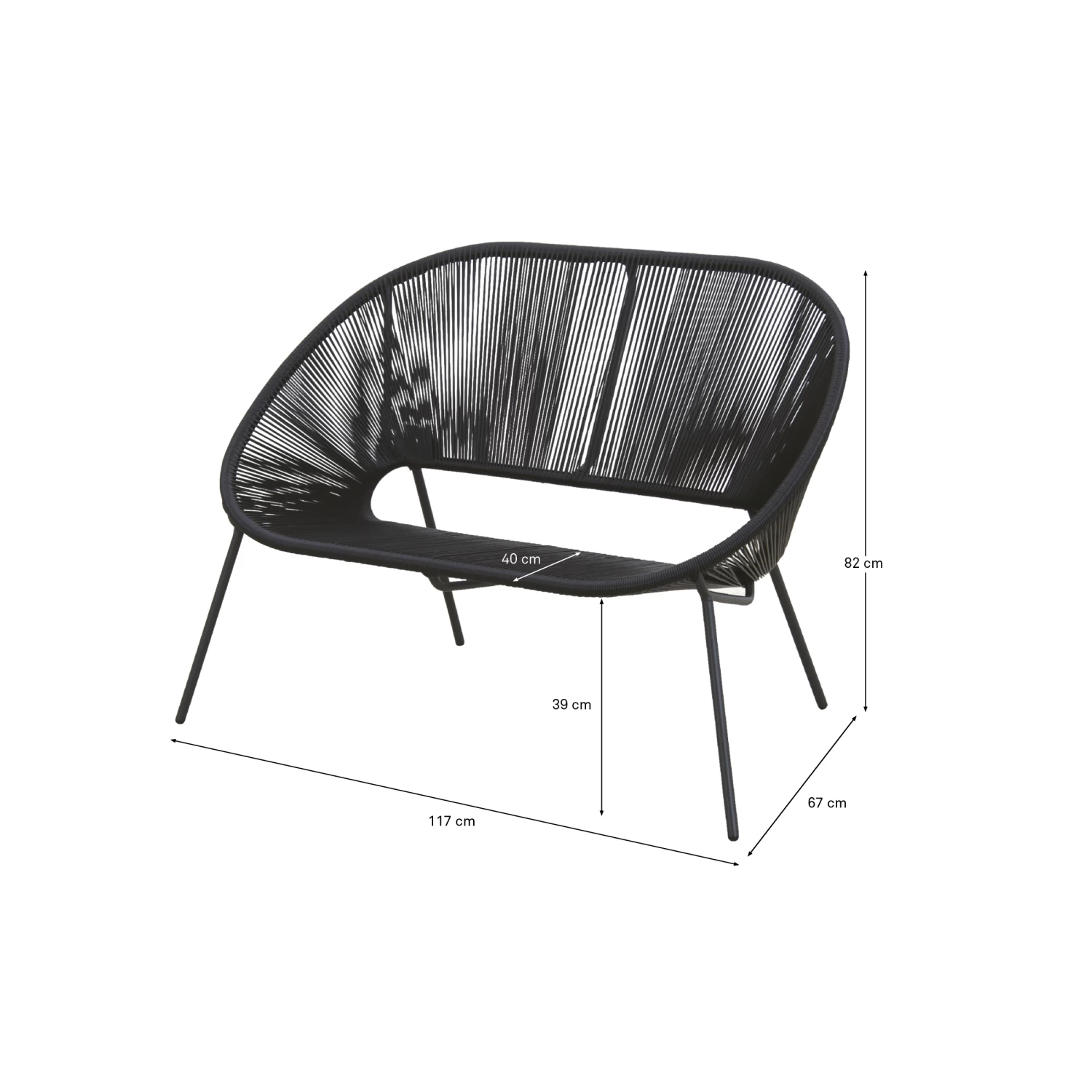 Bank Haïti zwart is een leuke hippe 2 zits bank. Het frame van de bank is gemaakt van staal en de zitting en de rug is van waslijndraad. De bank is makkelijk reinigbaar. De kleur van het draad is zwart. De bank zit comfortabel en door zijn compacte formaat is hij in veel tuinen te plaatsen. Het opvallende unieke design zorgt ervoor dat deze bank een echte eye-catcher is in je tuin. Deze zwarte bank is ook verkrijgbaar in de kleuren mintgroen en wit. Door deze opvallende bank in diverse kleuren te combineren met anderen tuinmeubelen en accessoires, maak jij je tuin klaar voor een kleurrijk en trendy spetterend tuinfeestje.