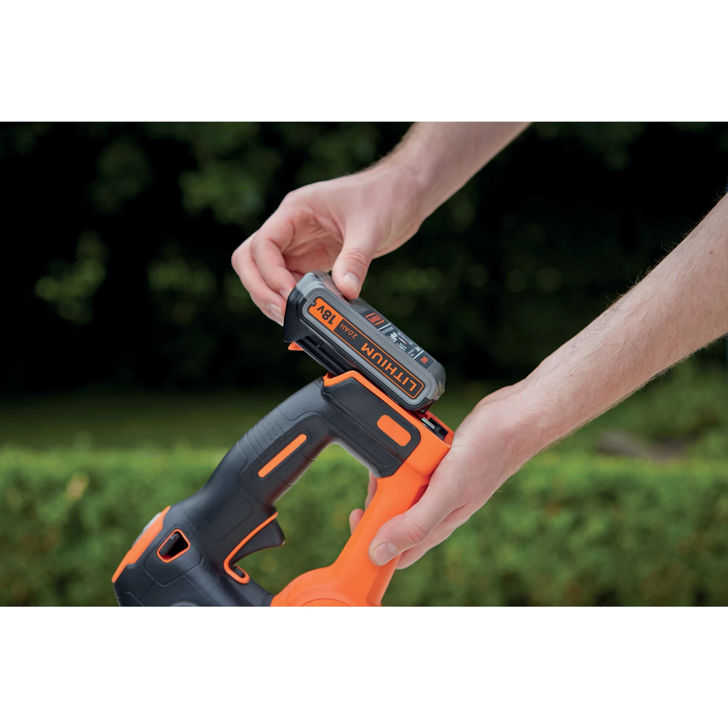 De BLACK+DECKER accu heggenschaar GTC18452PCB-XJ is dankzij het 45 cm zwaardmes en de snijcapaciteit van 18 mm geschikt voor grote heggen. Met de PowerCommand technologie kan je de machine tijdelijk meer kracht geven voor het snoeien van dikkere takken. Door het gebruik van een accu heb je alle bewegingsvrijheid tijdens het snoeien. De BLACK+DECKER accu heggenschaar GTC18452PCB-XJ is onderdeel van het BLACK+DECKER 18V accuplatform, dit betekent dat je dezelfde 18V BLACK+DECKER accu kan gebruiken voor alle BLACK+DECKER 18V machines. De machine wordt geleverd zonder accu.