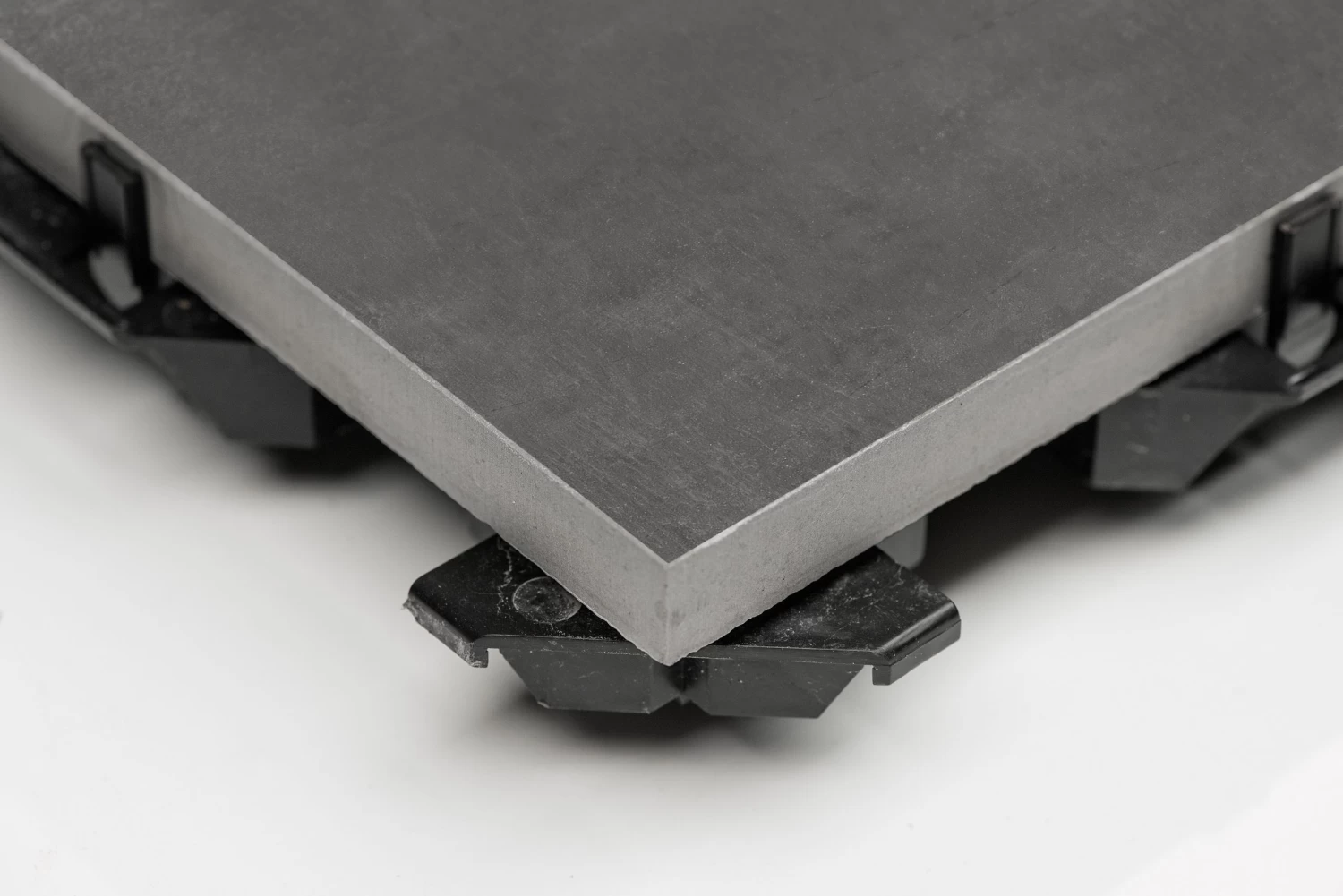 Ceramidrain is dé revolutie op het gebied van keramische terrastegels. Het product heeft namelijk alles in zich! Het combineert de positieve eigenschappen van keramische tegels met het verwerkingsgemak van een betontegel. Daarnaast kan het product regenwater onder je terras bufferen en geeft het langzaam weer af aan de grond (draineren). De bovenlaag van de Ceramidrain bestaat uit een keramische tegel van 16 millimeter dik. Keramische tegels zijn duurzaam en niet of nauwelijks aan verkleuring onderhevig. Bovendien zijn ze slijtvast en niet gevoelig voor krassen. De kunststof onderlaag heeft een open structuur en een wateropslagcapaciteit van maar liefst 22 liter per m². Regenwater wordt in deze onderlaag opgevangen en kan vervolgens langzaam worden afgegeven aan de grond. De twee lagen van de Ceramidrain zitten aan elkaar vast door een ijzersterke, gepatenteerde spreidplugverbinding. De lagen kunnen niet loskomen van elkaar, ook niet met vorst. Dankzij de speciale Plug- & layverbinding schuif je de tegels makelijk in elkaar en is het leggen van de Ceramidrain zeer eenvoudig, mede doordat de tegels met 17 kilogram per stuk licht in gewicht zijn. Ceramidrain-tegels kun je gewoon verwerken in een drainerend (eventueel stabiliserend) zandbed. Ze hebben een afstandhouder van 3 mm die zorgt voor een optimale afvoer van het water. De tegels hoeven niet gevoegd te worden, dit heeft een gunstig kostenaspect. Keramische tegels bevatten verschillende prints. Door deze variatie in nuancering en tekening, ontstaat een mooi, natuurlijk beeld. Zo is iedere vierkante meter bestrating in je tuin uniek. In de specificaties van deze keramische tegel, lees je hoeveel verschillende prints dit product heeft. Waar mogelijk laten we bij de afbeeldingen van de keramische tegels ook de verschillende prints zien, voor een zo compleet mogelijk beeld.