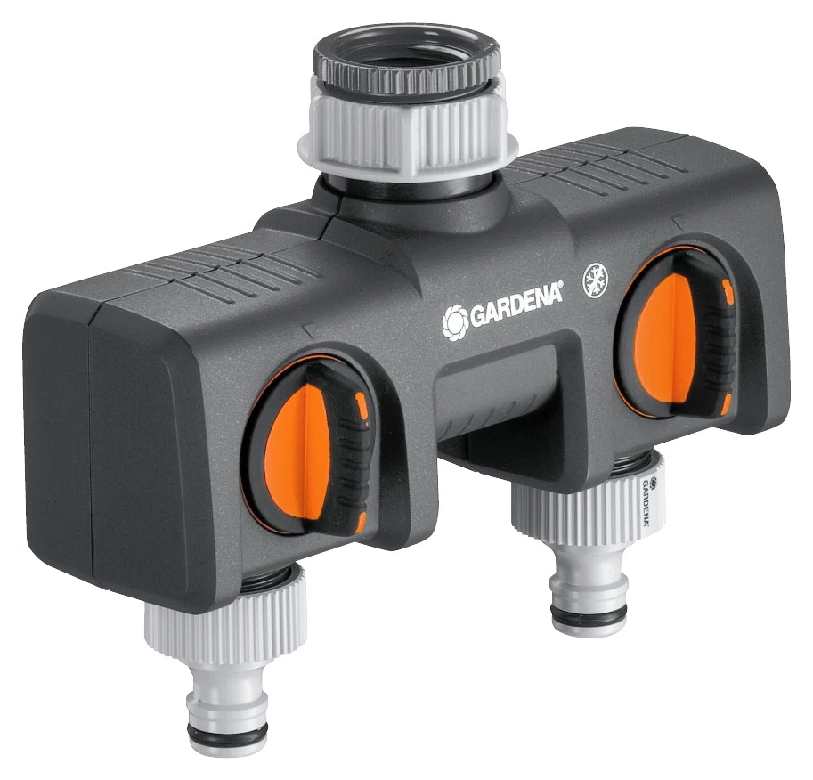 De Gardena 2-weg waterverdeler is ideaal voor het gebruik van twee aansluitapparaten op één kraan. De waterdoorvoer is reguleerbaar en volledig afsluitbaar. De waterverdeler is geschikt voor kranen van 26,5 millimeter (G 3/4”) en 33,3 millimeter (G 1”).