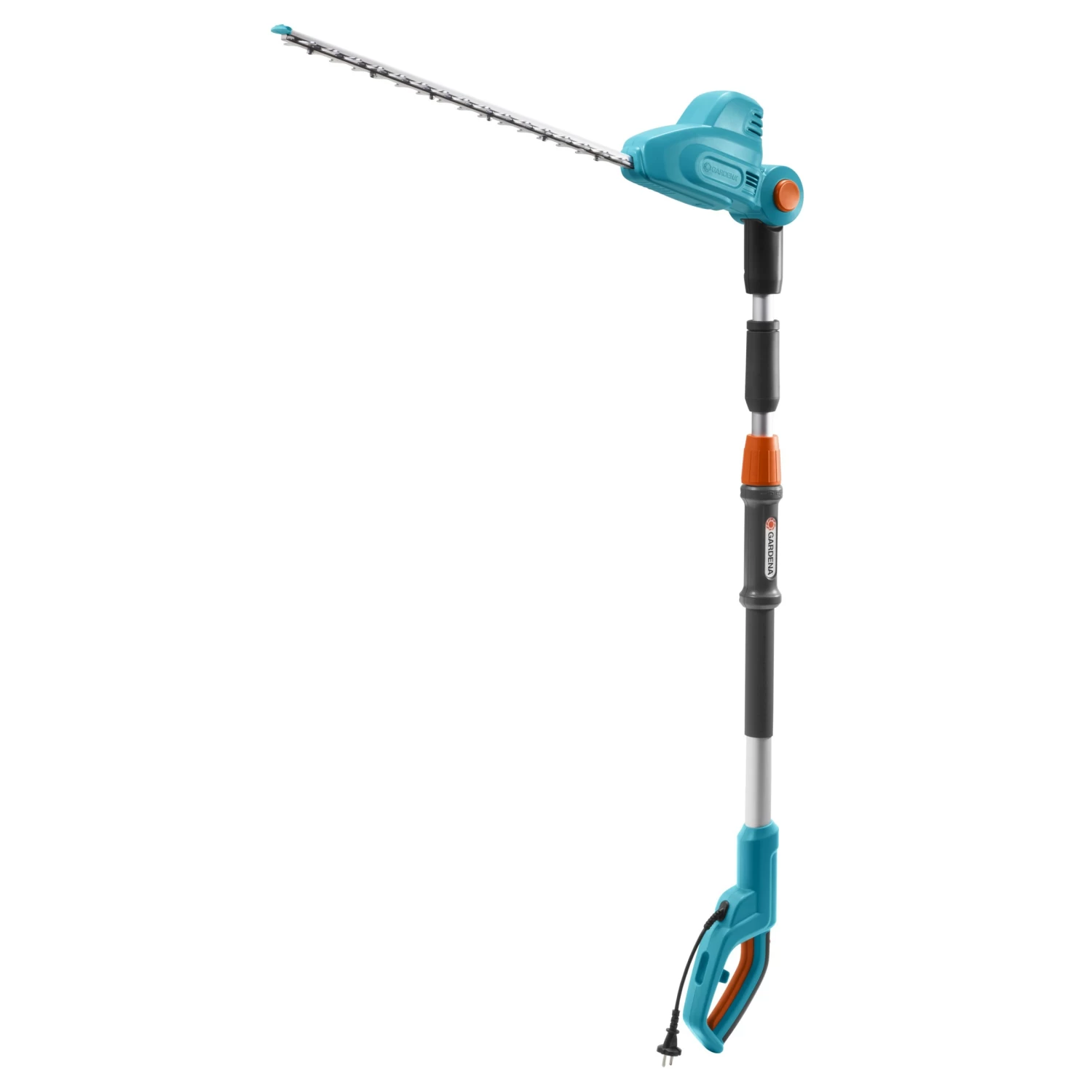 De Gardena elektrische heggenschaar THS 500/48 is door de telescopische steel ideaal voor het snoeien van hoge heggen. De steel kan verlengd worden tot 2 meter voor een bereik van bijna 3 meter. Dankzij de kantelbare kop kunnen heggentoppen en bodembedekkers makkelijk gesnoeid worden. Door de grote mesopening zijn takken tot 25 mm zijn geen probleem voor deze heggenschaar. De heggenschaar is voorzien van een krachtige motor van 500 watt en de meslengte is 48 cm.