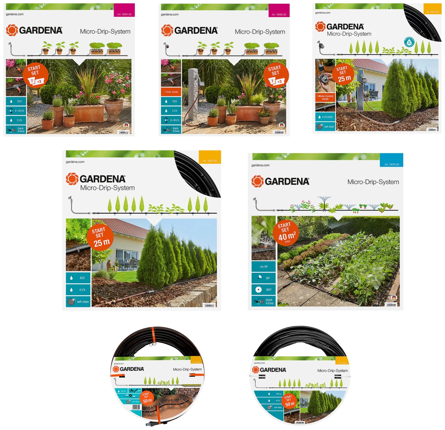 De Gardena Micro-Drip-System startset voor bloembedden en moestuinen is een complete set waarmee je heel eenvoudig planten in moestuinen en bloemen in bloembedden kunt bewateren. De werking van het Micro-Drip-System is erg eenvoudig: leg de hoofdleiding in de (moes)tuin en maak met het meegeleverde gereedschap gaatjes in de slang waar de sproeiers komen. Plaats vervolgens de sproeiers op de slang en maak hiervan voor hogere gewassen gebruik van de verlengstelen. Met deze set plaats je op de 4 hoekpunten van de (moes)tuin en middenin een sproeier zodat alle planten in de moestuin precies genoeg water krijgen. Ook tijdens periodes van afwezigheid zoals tijdens een vakantie biedt deze set uitkomst. Maak dan gebruik van een (optionele) watercomputer en je hoeft er niet meer naar om te kijken. Deze set bestaat uit een drukregelaar, 25 meter aansluitslang, 2 hoekstukken, 1 kruisstuk, 5 verhoogde sproeiers, 5 afsluiters, 3 eindstoppen, 5 pennen om de slang mee vast te zetten en 3 eindstoppen.