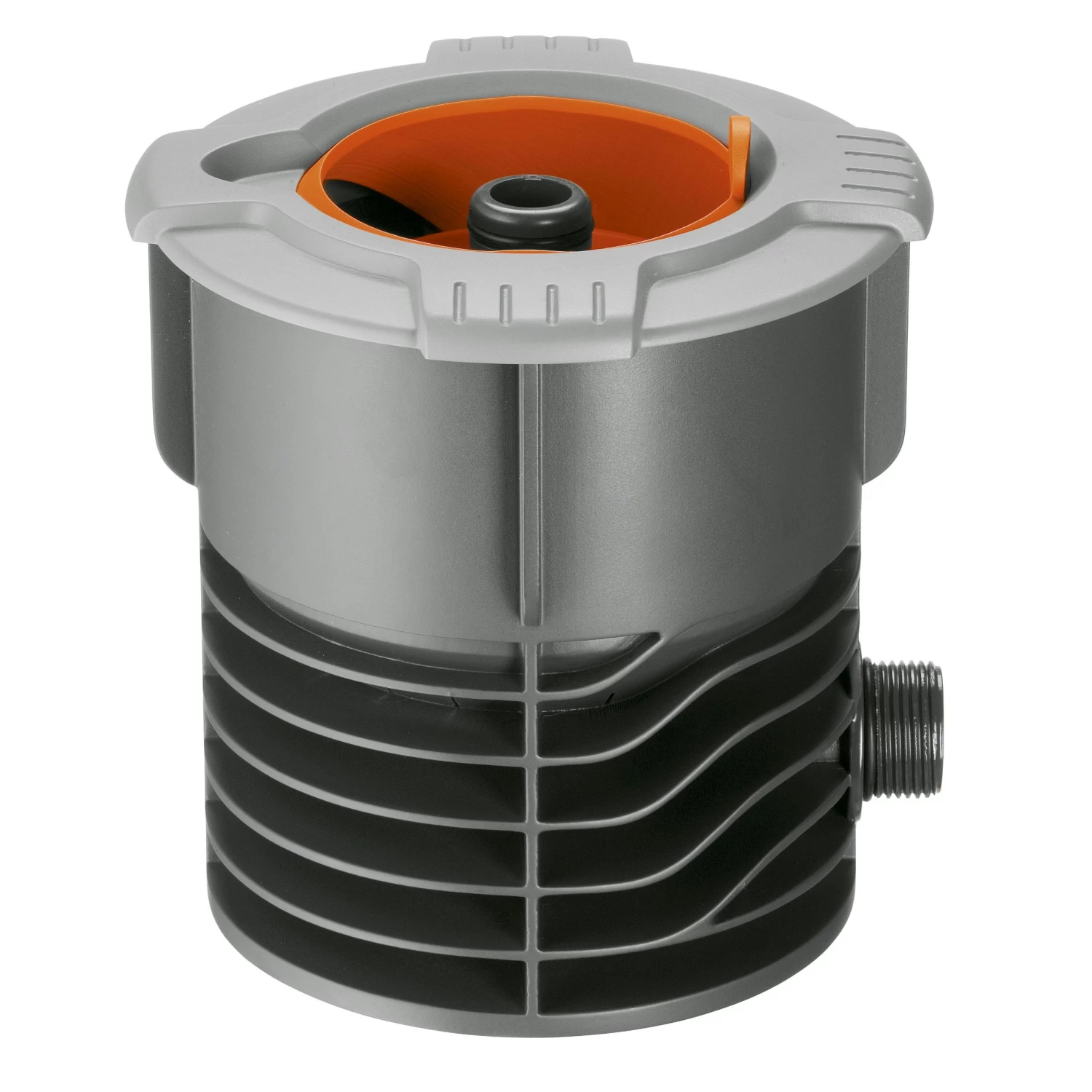 Het Gardena aansluitgarnituur is bedoelt om je water aan te sluiten op je ondergrondse Gardena Sprinklersysteem of Gardena Pipeline systeem. De bolvormige afdekking klapt naar binnen zodat het aansluitgarnituur geen obstakel is tijdens het grasmaaien. Het uitneembare filter zorgt ervoor dat er geen vuil in de Gardena aansluitgarnituur komt als de bolvormige afdekking open staat. De aansluitkraan wordt standaard meegeleverd met het Gardena ‘Profi’ Max-Flow System Kraanstuk, deze stabiliseert de waterdruk. Het Gardena aansluitgarnituur heeft een buitendraad van 3/4”