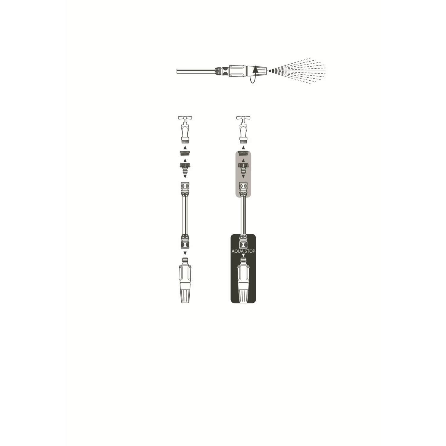 Met de Gardena spuitset (startset) kun je direct aan het werk met de tuinslang. De spuitset bestaat uit een kraanstuk, slangstuk, waterstop en verstelbare tuinspuit. Met deze artikelen heb je alle benodigdheden om aan te sluiten aan de buitenkraan en de tuinslang. Zo kun je op je gemak de tuin besproeien of het terras reinigen.