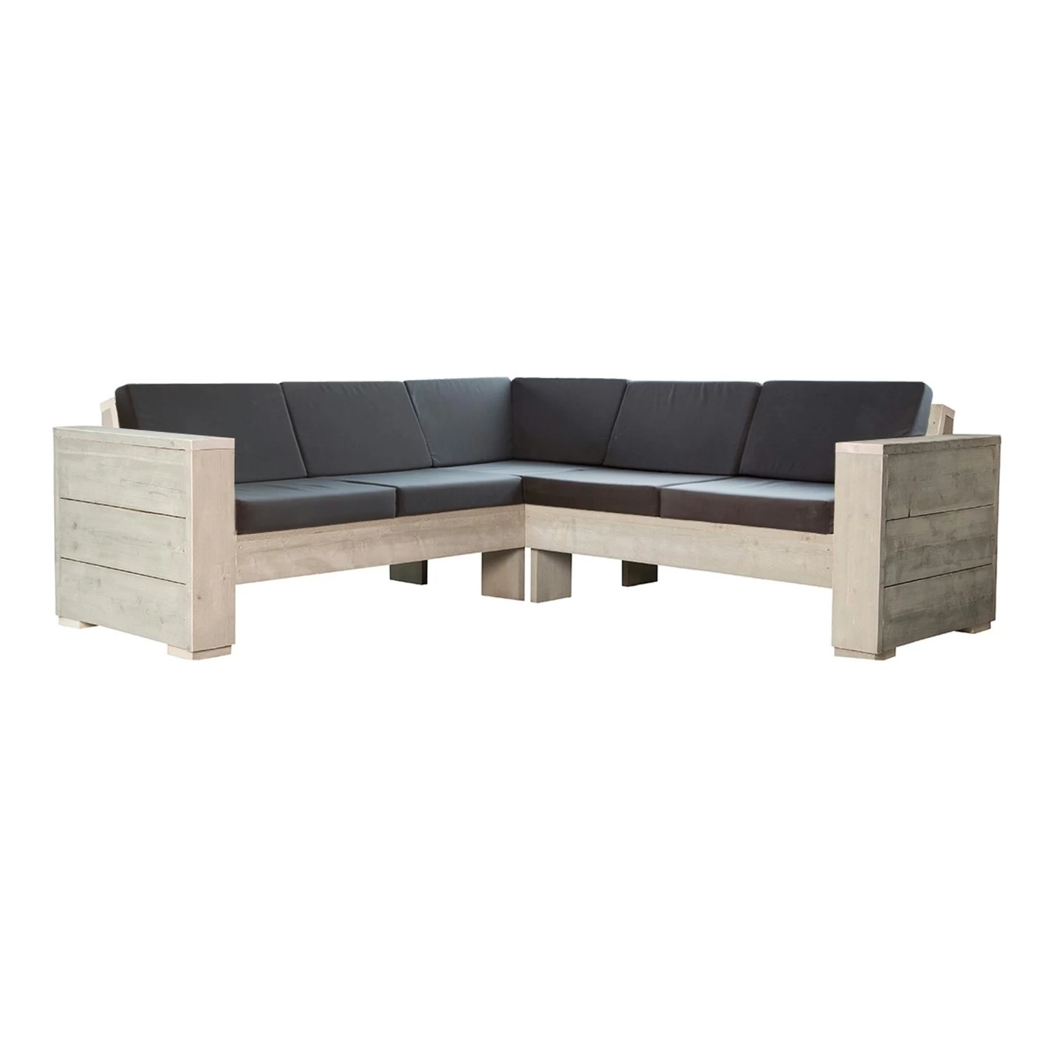 De hoekbank Berlinde zand geeft jouw tuin een gezellige beachlife uitstraling. De loungehoekbank, geheel gemaakt van steigerhout, heeft een totale breedte van 2 x 213 centimeter en biedt zitplek voor 4 tot 6 personen. Je kunt de loungebank compleet maken met de comfortabele zitkussens (los verkrijgbaar). De hoekbank Berlinde is uitstekend te combineren met andere steigerhouten meubels en is te verkrijgen in drie kleuren: zand, wit en grijs.