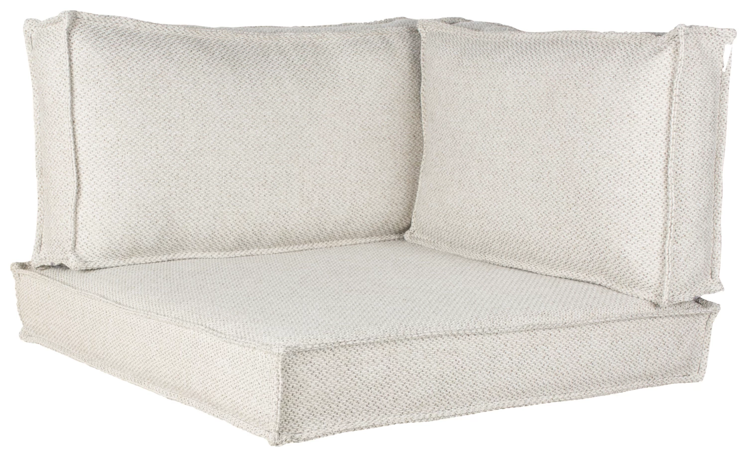 De set bestaat uit een zitkussen van 80 x 80cm en rugkussens van 80 x 40cm en 65 x 40cm.