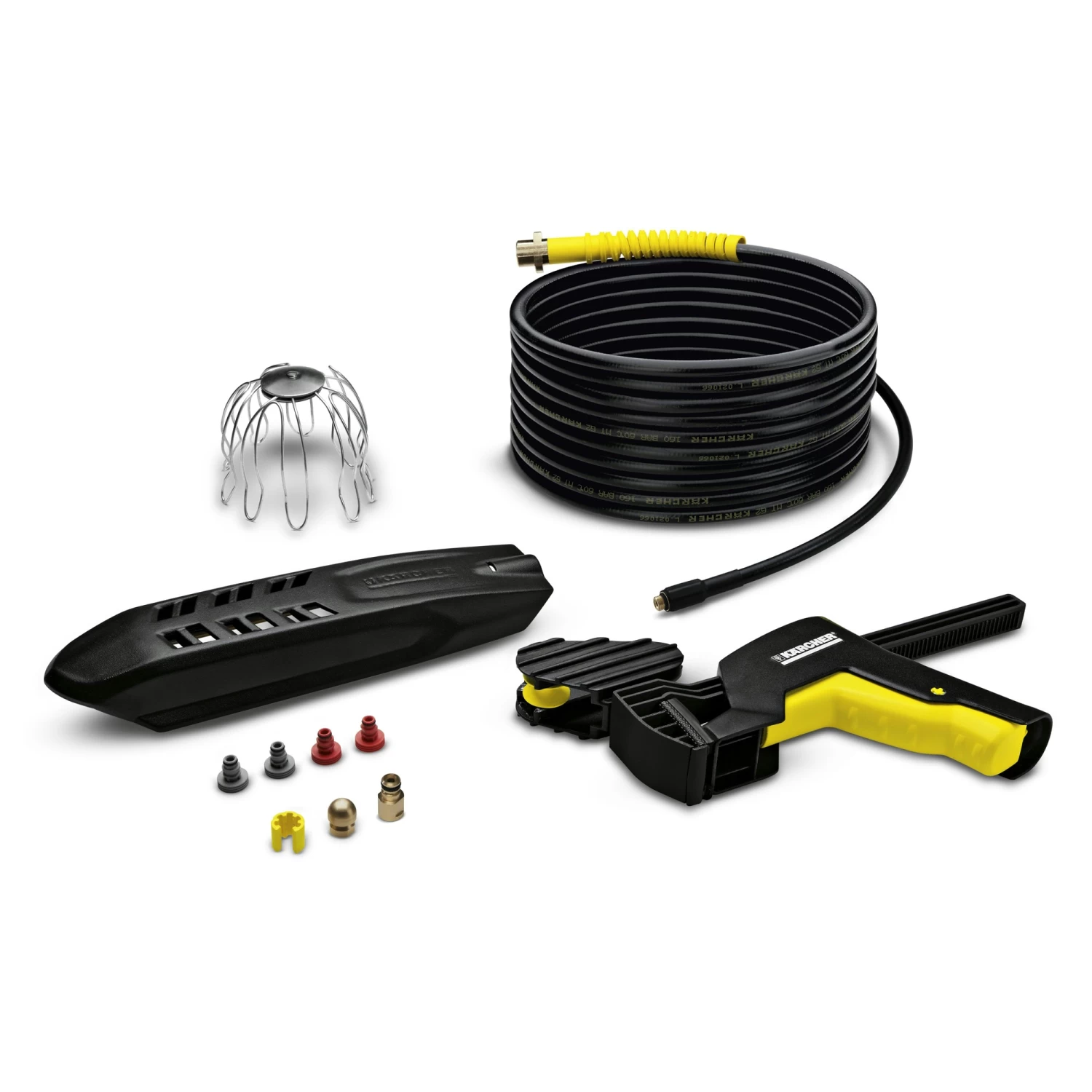 Verstopte buizen zijn verleden tijd met deze Kärcher rioolreinigingsset 20m. Met de markeringsring kun je gemakkelijk zien hoe ver je bent. Omdat het een zeer flexibele slang betreft kun je bijzonder effectief reinigen. De Kärcher rioolreinigingsset 20m is zelfs versterkt met textiel vlechtwerk. Dankzij de messing aansluiting heeft de slang een enorm lange levensduur. Al met al is geen smerig riool of afvoerbuis veilig voor de Kärcher rioolreinigingsset 20m.