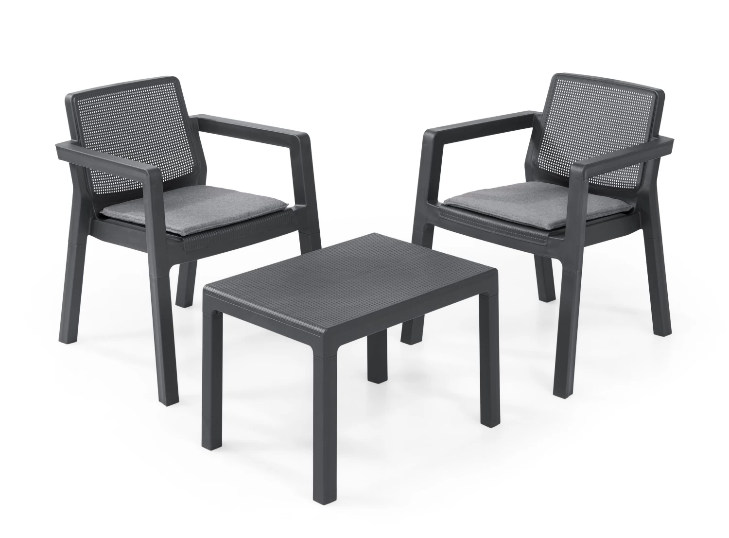 Dat je zelfs op een klein oppervlak, zoals een balkon veel sfeer kunt creëren, bewijst de Emily balkonset. Met twee elegante stoelen en een handige tafel geniet jij van iedere mooie dag. Deze set is heel eenvoudig en in slechts vijf minuten te monteren. Zonder gereedschap! De stapelbare loungestoelen berg je na gebruik weer makkelijk op. De Emily balkonset is verkrijgbaar met en zonder kussens.