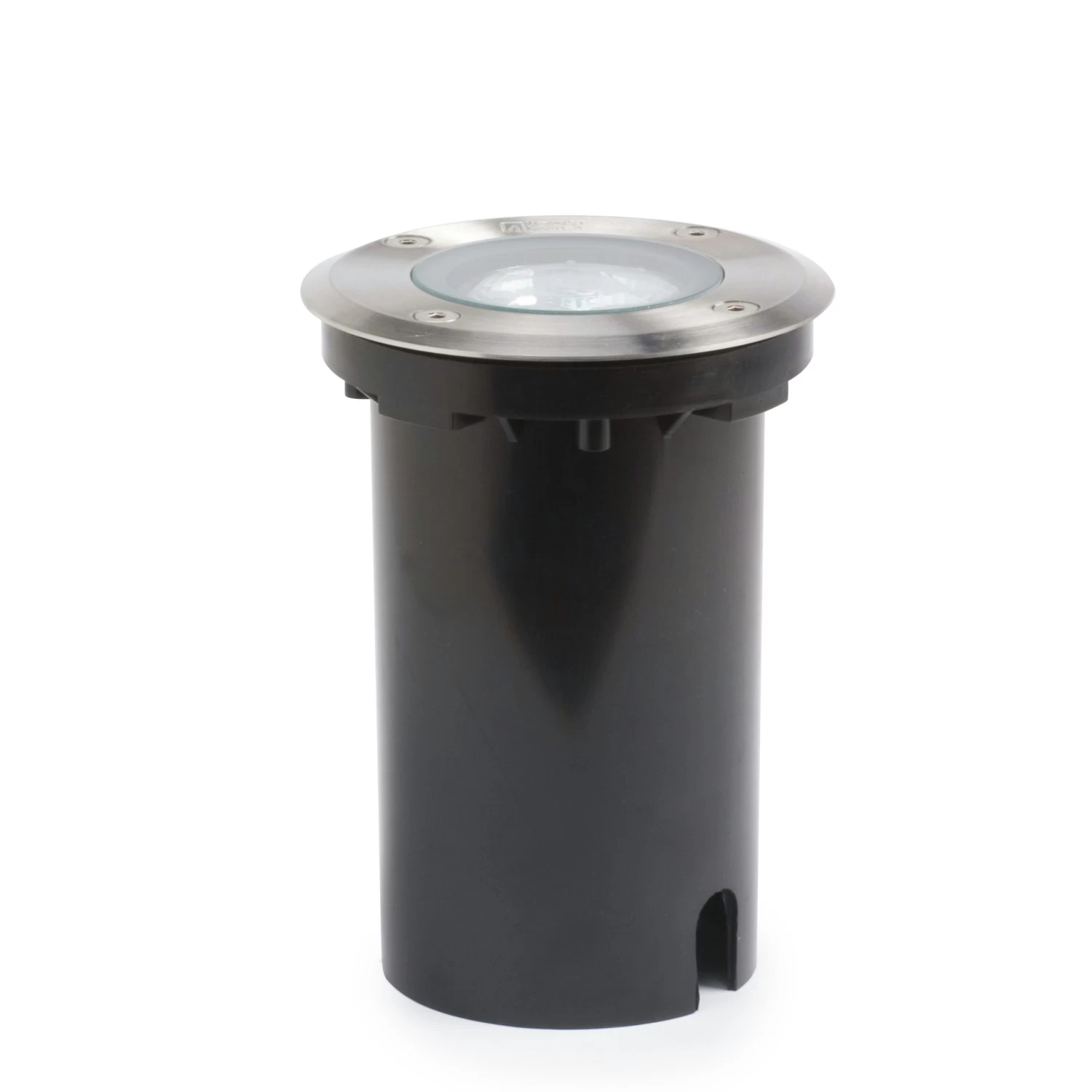 Deze Konstsmide grondspot Round ø11cm RVS is een populaire 230V buitenlamp die zorgt voor sfeervolle lichtaccenten rond huis en tuin. Accentueer looppad, oprit, groen, struiken en bomen tot circa 5m hoogte met deze spot met transparant glas. De RVS spot met aluminium lamphuis en kunststof inbouwkoker heeft een inbouwdiameter van 10cm, de aluminium spot die in de kunststof ombouw valt heeft een diameter van 8.2cm. De inbouwdiepte van de inbouwkoker bedraagt 14.5cm.