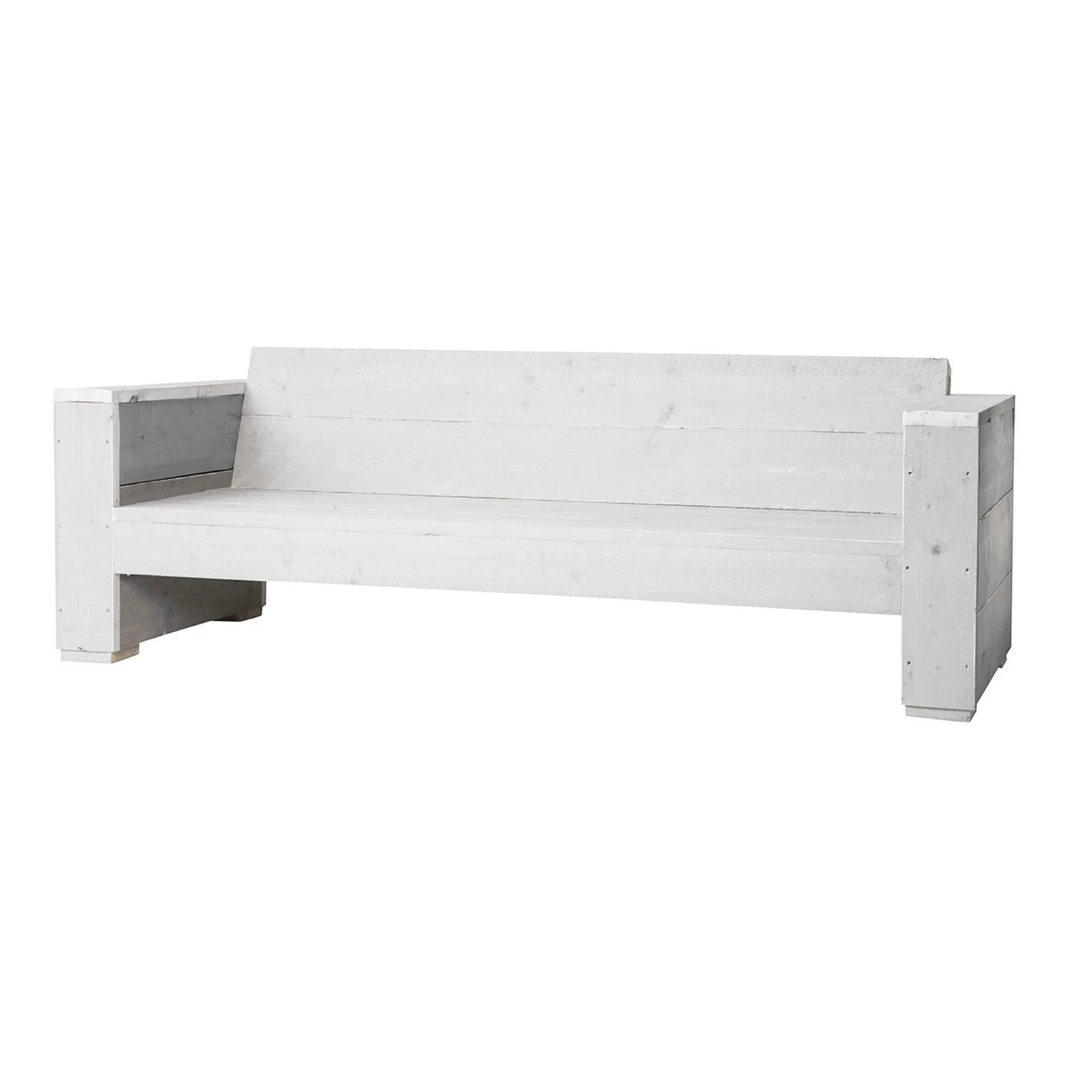 De loungebank Marlind 3-zits wit geeft jouw tuin een gezellige beachlife uitstraling. De loungebank is geheel gemaakt van steigerhout met een breedte van 210 centimeter, een hoogte van 73 en een zitdiepte van 77 cm. De bank biedt zitplek voor 3 tot 4 personen. Je kunt de loungebank compleet maken comfortabele zitkussens (los verkrijgbaar). De loungebank Marlind is uitstekend te combineren met andere steigerhouten meubels.