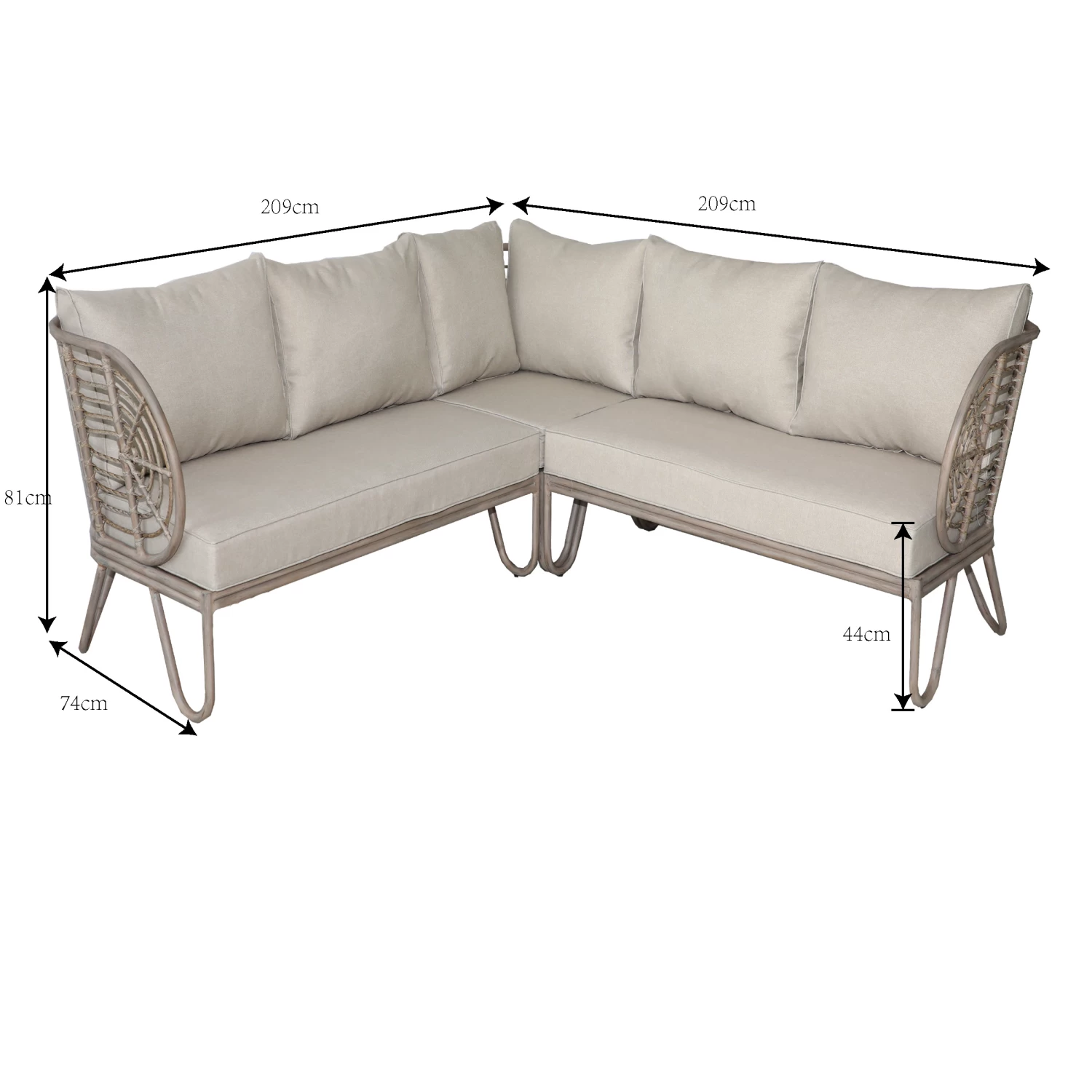 De loungeset is uitgevoerd met een rijkgevulde zandkleurige kussens wat zorgt voor een aangenaam zitcomfort.