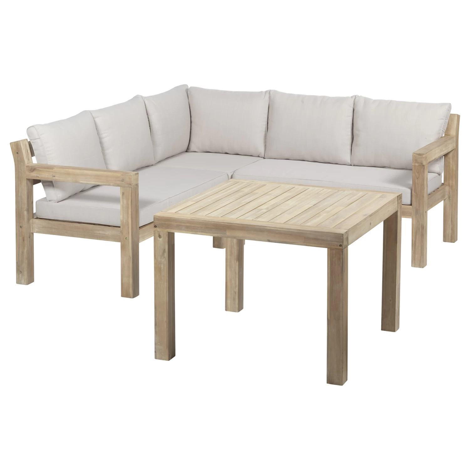 De high dining set Cecina is een prachtige set waar je lekker in kunt loungen en waar je ook aan kunt dineren vanwege zijn hoge tafel. De high dining set is gemaakt van acacia hardhout, dit type hout staat bekend dat het lang meegaat en zeer sterk is en makkelijk te behandelen. De set heeft heerlijk comfortabele kussens. De kussens zijn waterafstotend en UV bestendig waardoor de kleur langer behouden blijft.Â
