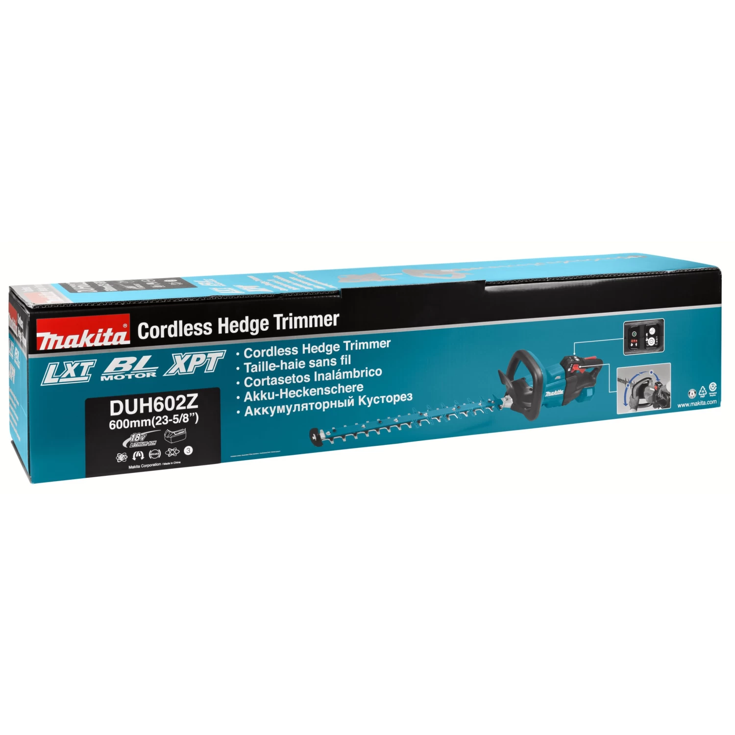 De Makita accu heggenschaar DUH602Z is een professionele heggenschaar met lage trillingen en geluidsproductie. Door de elektrische veiligheidsrem zorgt ervoor dat de machine stopt zodra je één van je handen van de machine haalt. Dankzij de draaibare achterhandgreep heb je optimale controle over de machine. De Makita accu heggenschaar DUH602Z maakt onderdeel uit van Makita 18V accuplatform, hierdoor kan je met de accu meer dan 100 Makita machines voorzien van energie. De heggenschaar wordt geleverd zonder accu.