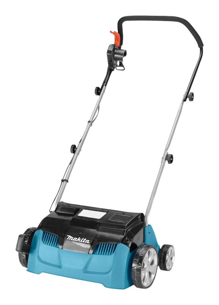 De Makita elektrische verticuteermachine UV3200 is het instapmodel van de elektrische Makita verticuteermachines. De verticuteermachine kan jouw gazon weer gezond maken en houden. Het haalt namelijk door de krachtige motor van 1300 Watt met gemak mos, riet en zelfs bladeren weg. Hierdoor krijgt je gazon weer ruimte om voedingsstoffen op te nemen. De messen van de machine hebben een maaibreedte van 32 cm en kunnen eenvoudig door een hendel in 5 verschillende standen worden ingesteld. Je hebt dus altijd je gewenste maaidiepte. De opvangzak van 30 liter zorgt dat je het afval niet hoeft te harken. De verticuteermachine is gemakkelijk op te bergen door de opvouwbare beugel. Het apparaat heeft een dubbele veiligheidsschakelaar die ervoor zorgt dat de verticuteermachine niet zomaar wordt opgestart. De Makita elektrische verticuteermachine UV3200 is een gebruiksvriendelijk apparaat die jouw tuinafval goed verwijdert.