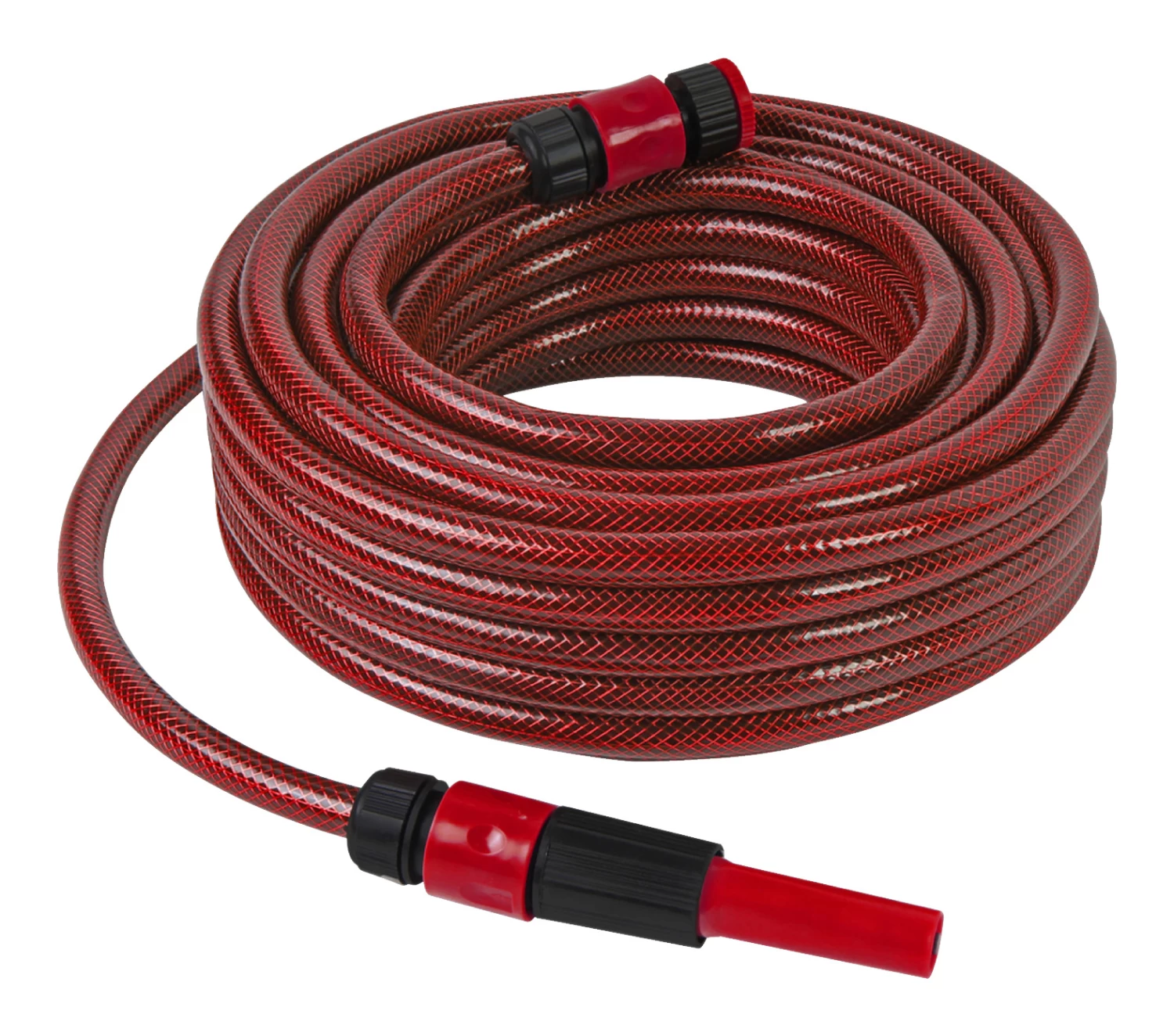 Deze tuinslangset bestaat uit 15 meter tuinslang, 2 koppelingen, 1 kraanstuk en 1 tuinspuit. Geschikt voor het besproeien van de tuin.