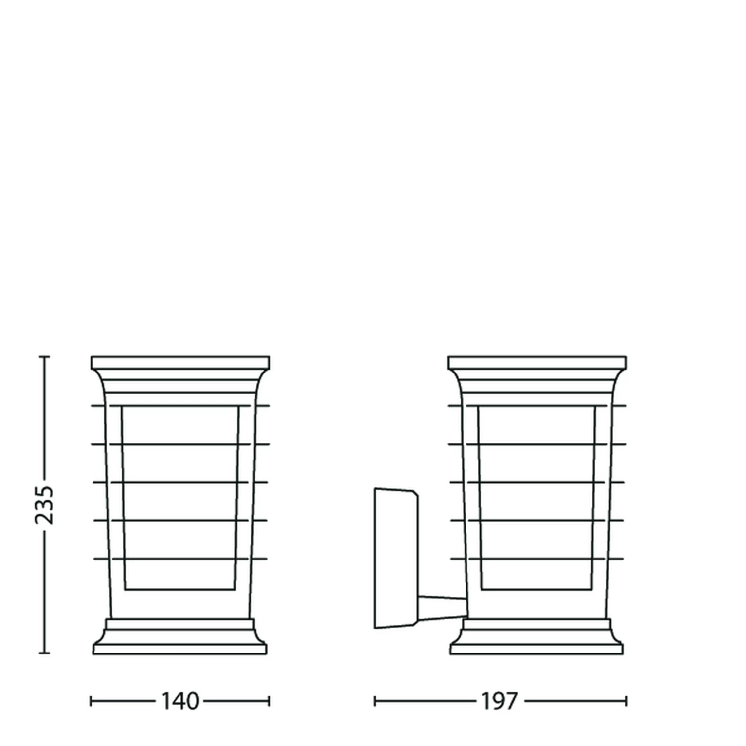 Deze schitterende Philips myGarden Patio buitenlamp 60W in zwart met grijs werpt een warm licht op je tuinmuur of terras. De lamp is gemaakt van hoogwaardig aluminium en is de perfecte aanvulling op de tuin. Het armatuur heeft een E27 fitting en is daardoor geschikt voor de gewone maat lamp. Door direct de juiste lichtbron te kopen uit ons ruime assortiment lichtbronnen maak je de lamp meteen klaar voor gebruik. De Philips myGarden Patio buitenlamp 60W is weerbestendig en daardoor uitermate geschikt voor toepassing buitenshuis.