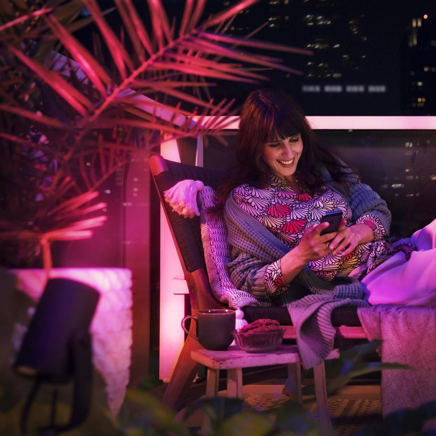 Met de slimme prikspt heb je dankzij de 50.000 wittinten altijd het juiste licht om te ontspannen, concentreren, lezen of energie opdoen. Daarnaast beschik je nog over een spectrum van maar liefst 16 miljoen kleuren. Nu kan je ook in de tuin volledig je eigen persoonlijke sfeer creëren met deze slimme Hue lamp.