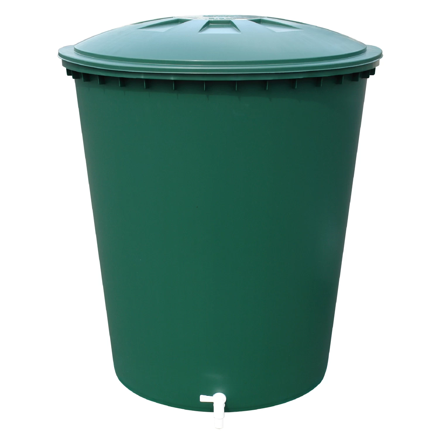 Deze regenton groen conisch 310 liter wordt zeer veel verkocht omdat hij voordelig is en toch een grote inhoud heeft. Daar kun je aardig wat planten mee goedkoop water geven. De ton heeft een kindveilige deksel en een witte aftapkraan die je ook op een Gardena aan kunt sluiten. De conisch groene regenton heeft een diameter van 79 centimeter, een hoogte van 93 centimeter en een inhoud van 310 liter. Het materiaal van de waterton is vrijwel onverwoestbaar. Vorst, regen en dergelijke weersomstandigheden hebben geen vat op deze regenton, wel dien je de regenton leeg te maken bij vorstgevaar. Daarnaast bestaat de ton voor 100% uit gerecycled plastic en beschikt over 1 jaar fabrieksgarantie. Plaats voor extra hoogte onder de regenton een regenton voet zodat je gemakkelijk met een emmer het water uit de kraan kan halen.