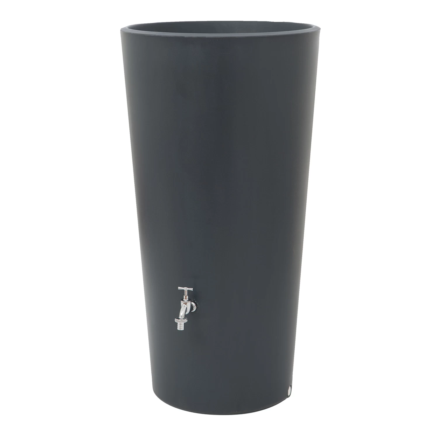Een trendy regenton met een plantenbak? Het bestaat! Deze Regenton met Plantenbak Antraciet Kunststof 150 Liter is met zijn stijlvollevorm een sieraad in iedere tuin. Deze regenton bevestig je eenvoudig, met behulp van een gatenzaag, aan je regenpijp en vangt zo automatisch na iedere regenbui het water op. De regenton heeft een inhoud van 150 liter en is reeds voorzien van een handig kraantje op emmer- of gieterhoogte die je ook op een Gardena aan kunt sluiten. De antraciete regenton is kleurvast en weerbestendig heeft een diameter van 59 centimeter, een hoogte van 110 centimeter en een inhoud van 150 liter. Het materiaal van de waterton is vrijwel onverwoestbaar. Vorst, regen en dergelijke weersomstandigheden hebben geen vat op deze regenton, wel dien je de regenton leeg te maken bij vorstgevaar.