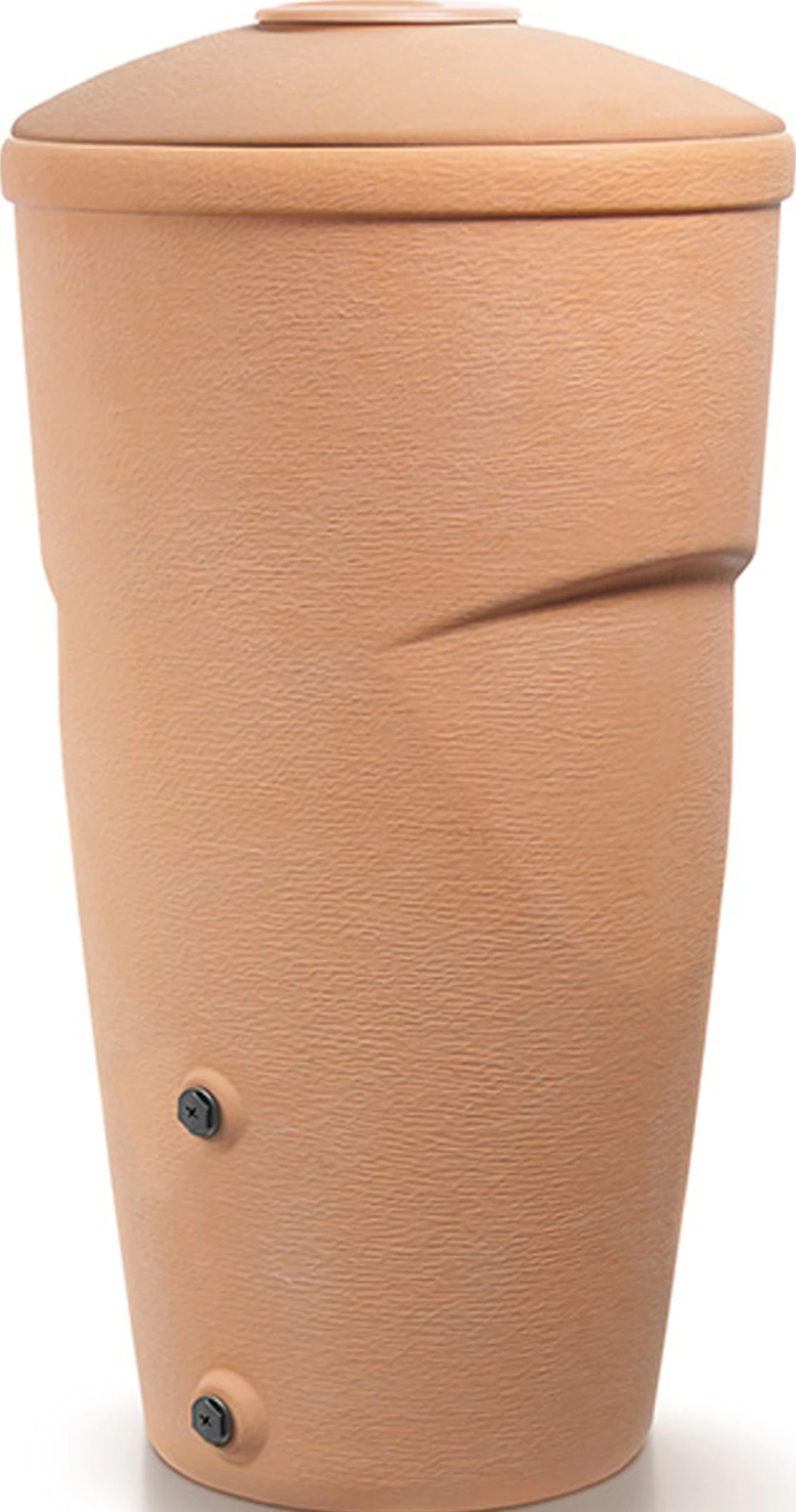 De Waterform regenton Wallycan in terra cotta kleur heeft een inhoud van 270L. De regenton heeft een hoogte van 127,8cm en, een breedte van 73,1cm en een diepte van 60,2cm. De regenton heeft een ronde vorm en inkepingen zorgen voor een speciaal design. Het kraantje dient apart te worden aangekocht. In de winter kan de ton heel makkelijk leeg gemaakt worden door middel van een gat dat hiervoor speciaal is voorzien. Via dit ‘wintergat’ maakt je ton winterklaar tegen vorst. Buiten de winter vang je het regenwater op en kan je het kostbare water op een nuttige wijze hergebruiken.