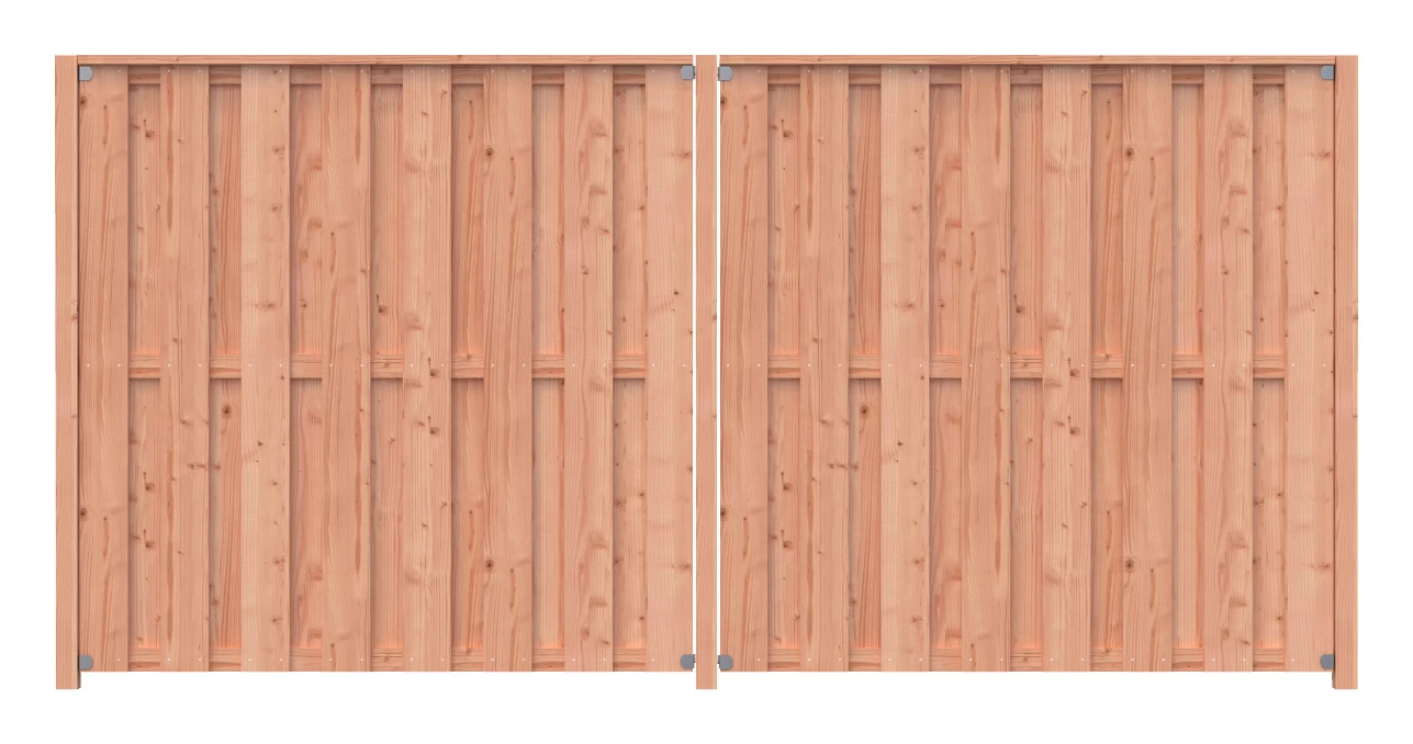 eze schutting is gemaakt van Douglashout, Door het direct te behandelen met een transparante tuinbeits zorg je ervoor dat de schutting tot wel 15 jaar meegaat. Dit tuinscherm bestaat uit 15 fijnbezaagde planken van 15 bij 140 millimeter. De planken staan relatief dicht tegen elkaar aan, waardoor de schutting een gemiddelde privacy biedt. De planken zijn bevestigd met RVS-schroeven, waardoor de schutting lang mee zal gaan. De totale afmeting van het tuinscherm Douglas is 180×180 cm en een ideale oplossing voor afscheiden van jouw tuin. Het startpakket is ook te verkrijgen in de grenenhouten versie en een Douglas hout variant. De tuinpalen zijn ook van douglashout met een kopmaat van ca. 6,5×6,5 cm van 240 cm lang.