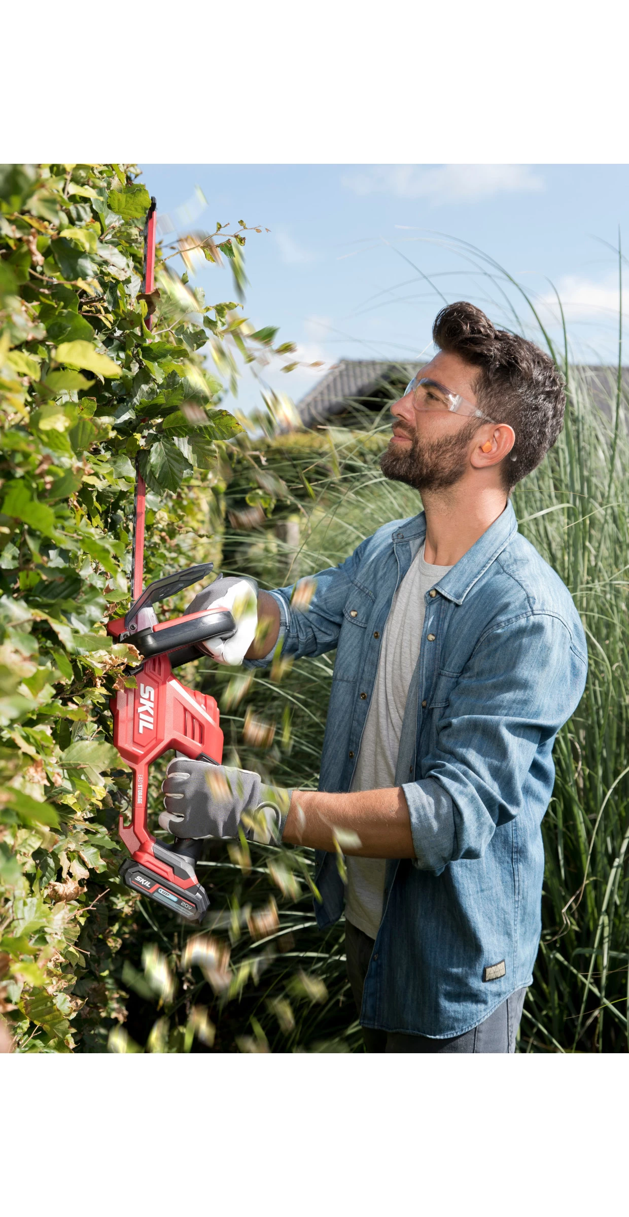 De 20V Max (18 V) SKIL 0430 is een accuheggenschaar voor het snoeien van heggen en struiken. Deze heeft een hoogwaardig mes van 55 cm met geharde, lasergesneden, diamantgeslepen tanden van koolstofstaal. Het snoeien van dikke takken is geen probleem voor de SKIL 0430 met de mesafstand van 20 mm en de zaagfunctie van de eerste tanden van het mes. Het ergonomische ontwerp met softgrip van de achterhandgreep en de praktische tweede handgreep bieden optimaal werkcomfort. Dankzij het lichte gewicht kunt u de gereedschap eenvoudig in elke positie hanteren, bijvoorbeeld bij bovenhands werken. U kunt zelfs langs muren of dichtbij de grond snoeien, dankzij de mespuntbeschermer. Dit voorkomt beschadiging van de mespunt, wanneer de accuheggenschaar een hard oppervlak raakt. Dankzij het exclusieve Easy Storage-ontwerp van SKIL neemt dit gereedschap na gebruik bijna geen ruimte in beslag. De SKIL 0430 CA wordt geleverd met een mesbeschermer en een Easy Storage-haak. De accu wordt niet meegeleverd.