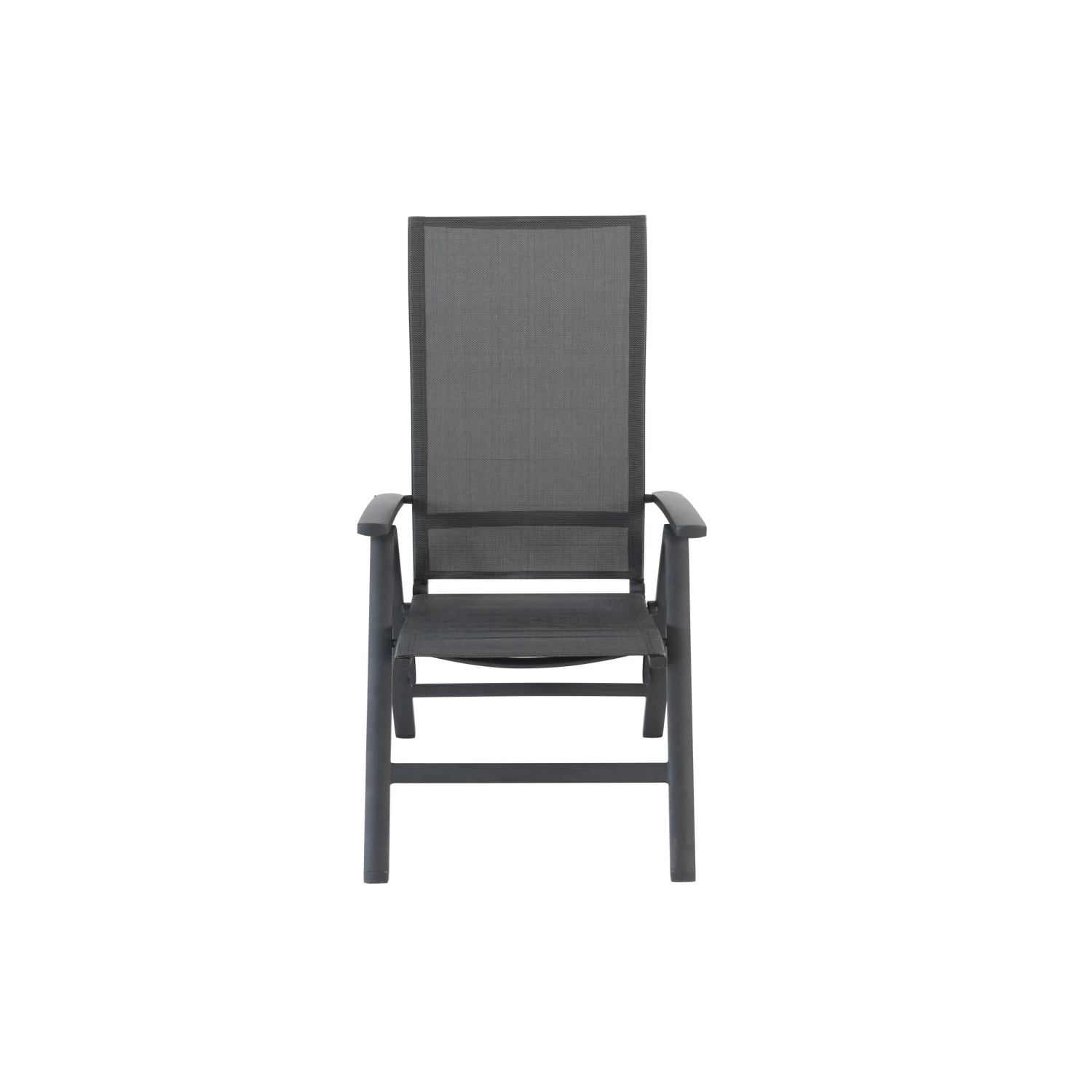 De standenstoel Valencia antraciet is een mooie stoel gemaakt van aluminium. Het ruggedeelte van de stoel is verstelbaar in 5 standen. De stoel is licht van gewicht en oersterk. Het zit en ruggedeelte is gemaakt van textileen wat erg makkelijk in het onderhoud is. De kleur van de stoel is antraciet.