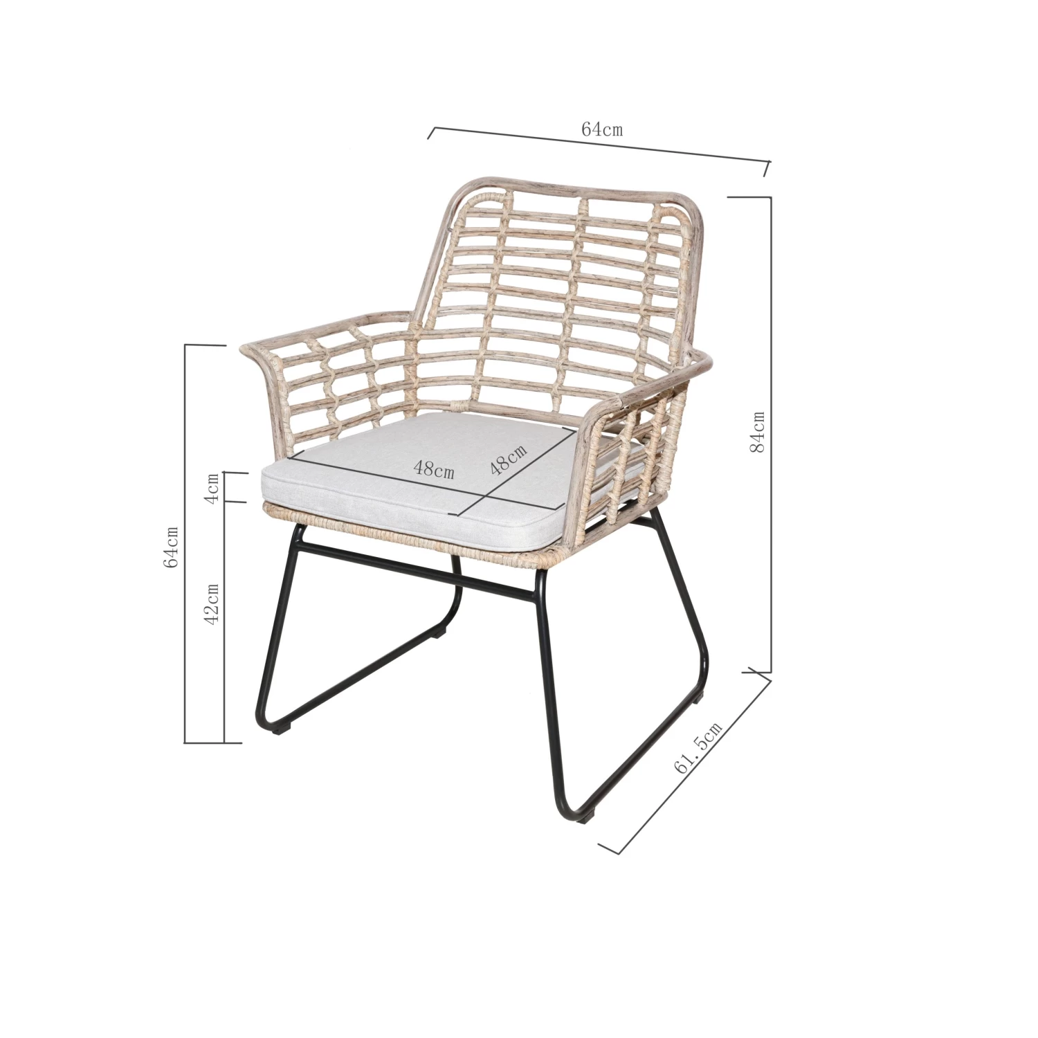 Deze sfeervolle Joy tuinstoel in de kleur naturel is gemaakt van wicker met een metalen onderstel. Deze stoel is echte sfeermaker met zijn retro rotan design. Het is een uitstekende stoel om in de tuin of los op het terras te zetten. Door de wicker look heeft deze bank een natuurlijke mediterrane uitstraling. De stoel heeft een naturel tint en wordt geleverd met bijpassende kussens in een lichtgrijze kleur.Â