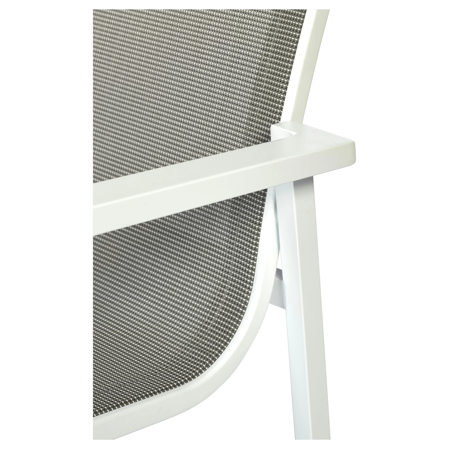 De stoel Valencia wit is een mooie stoel gemaakt van aluminium. De stoel is licht van gewicht en oersterk. Het zit en ruggedeelte is gemaakt van textileen wat erg makkelijk in het onderhoud is. De stoel Valencia heeft verder als voordeel dat hij stapelbaar is. De kleur van de stoel is wit.