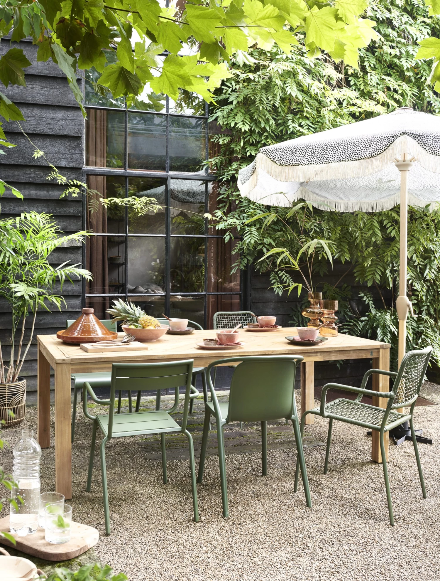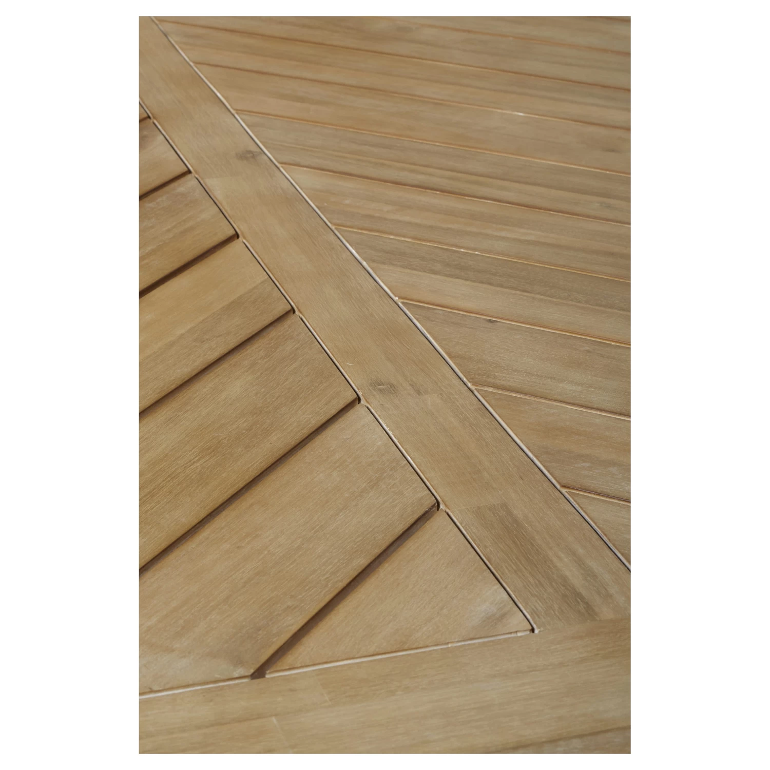 Tafel Jesse is een eigentijdse tafel met een visgraat motief. Deze tafel is door KARWEI speciaal ontworpen voor iedereen die houdt van uitgesproken meubelen. Combineer de tafel met fijne eetkamerstoelen en je kunt in de zomermaanden heerlijk buiten dineren. Omdat hout een natuur product is gaat het na verloop van tijd leven. Alle houten tuinmeubelen zijn voor behandeld met een olie laag, na verloopt van tijd kunnen er scheurtjes en verkleuring ontstaan. Met de juiste behandeling blijft het hout lang mooi van kleur.