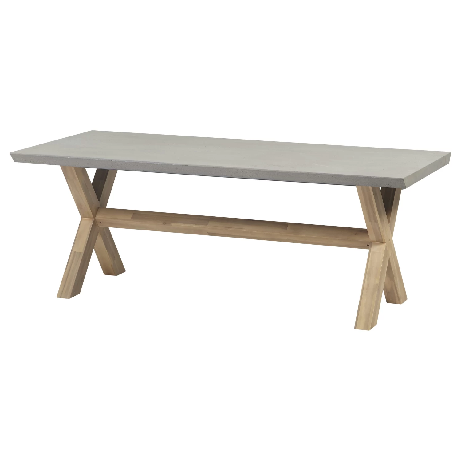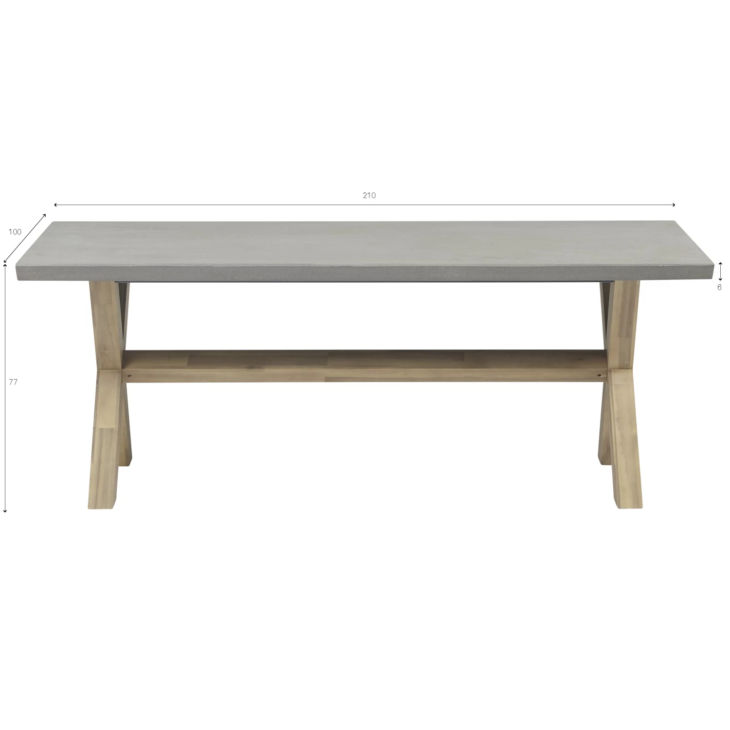 Deze stoere tuintafel is een echte eyecatcher voor in jouw tuin. Het tafelblad is gemaakt van polystone en heeft een betonlook. Het materiaal polystone is onderhoudsvriendelijk en weersbestendig. Het robuuste frame is gemaakt van hardhout en heeft een eigentijds ontwerp. Wanneer je op zoek bent naar een robuuste, moderne eettafel voor in de tuin, dan is tuintafel Kay de juiste keuze.