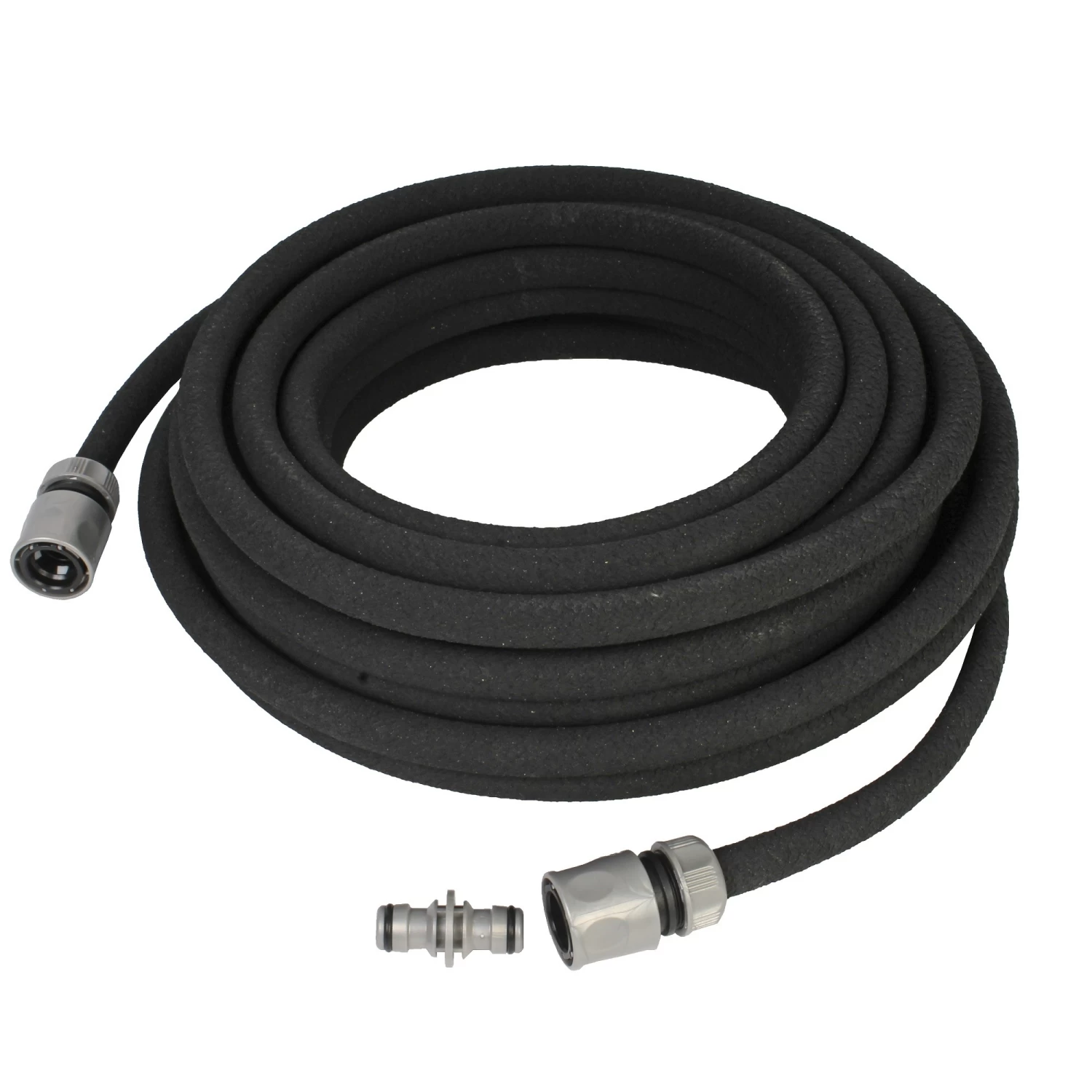 De Talen Tools druppelslang 15 m is geschikt voor gerichte en waterbesparende besproeiing van planten in borders en bloembakken. Doordat deze druppelslang niet in een keer heel veel, maar geleidelijk het water afgeeft aan de plant, kun je hiermee heel gericht water geven. Deze druppelslang heeft een lengte van 15 meter en de aansluitstukken zitten er al aan. De druppelslang kun je via de koppelingen aan een standaard tuinslang aansluiten of verlengen.