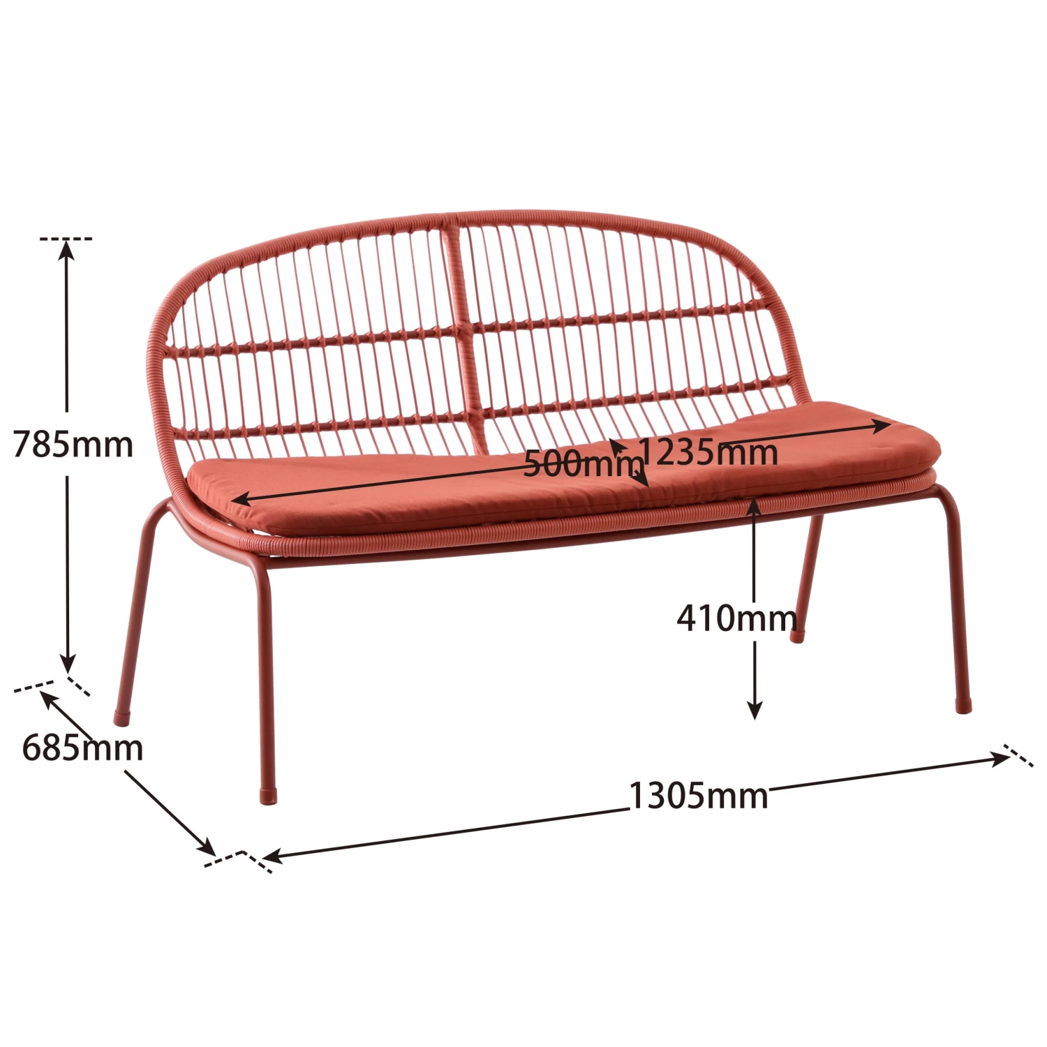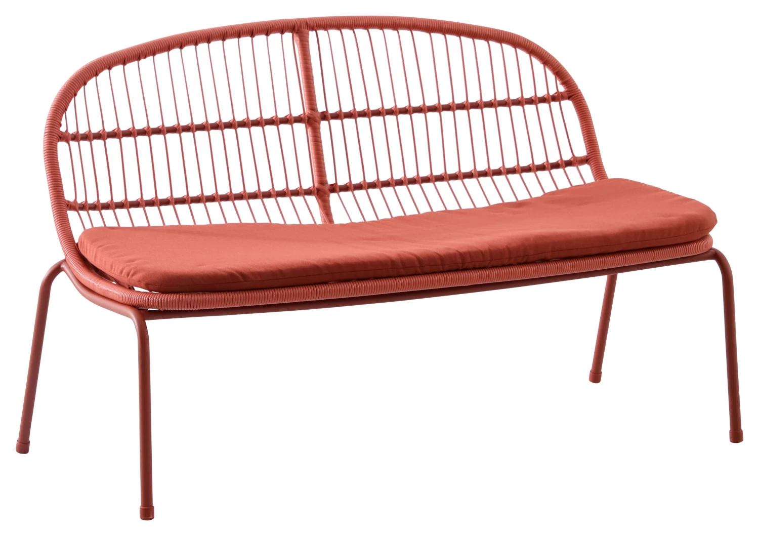 De 2-zits tuinbank Indy in de kleur terracotta geeft je tuin een speelse uitstraling. Het ontwerp is niet alleen trendy voor het oog maar biedt daarnaast ook veel comfort.
