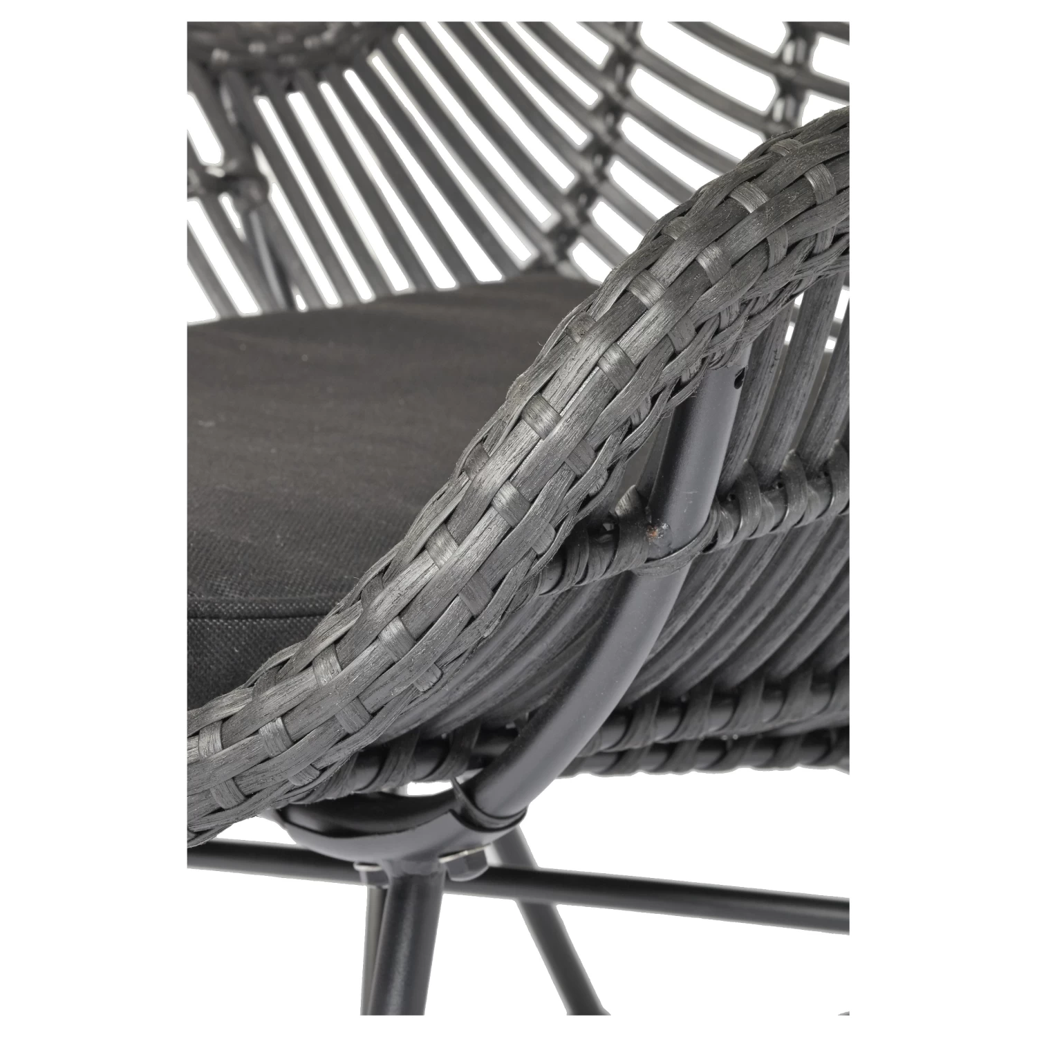 De stoel Bobbi zwart is gemaakt van wicker met een stalen onderstel. Bobbi is een stoere loungestoel die speciaal gemaakt is voor buitengebruik. De stoel heeft een natuurlijke rotan look maar is goed bestand tegen het Nederlandse klimaat. In deze stoel kun je heerlijk lounge in je moderne tuin of op je balkon. Deze stoel wordt geleverd met een zitkussen voor extra zitcomfort.