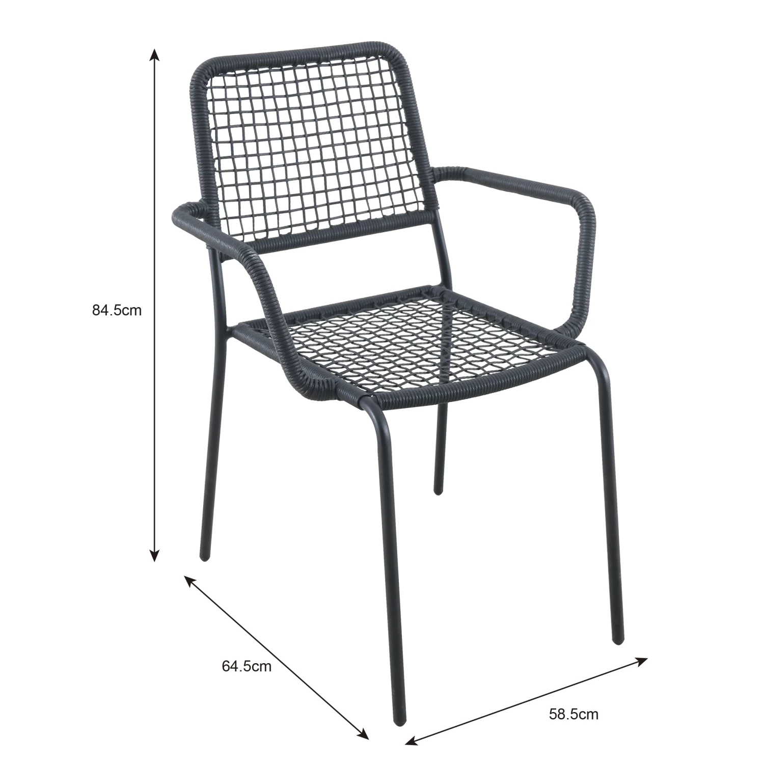 Stoel Fay zwart is een leuke draadstoel voor in de tuin. De stoel heeft een simpel design en past dus in vrijwel elke tuin. De stoel is verkrijgbaar in de kleuren zwart, legergroen en okergeel en is gemaakt van wickertouw en aluminium. Stoel Fay is 85 centimeter hoog, 59 centimeter breed en 65 centimeter diep.