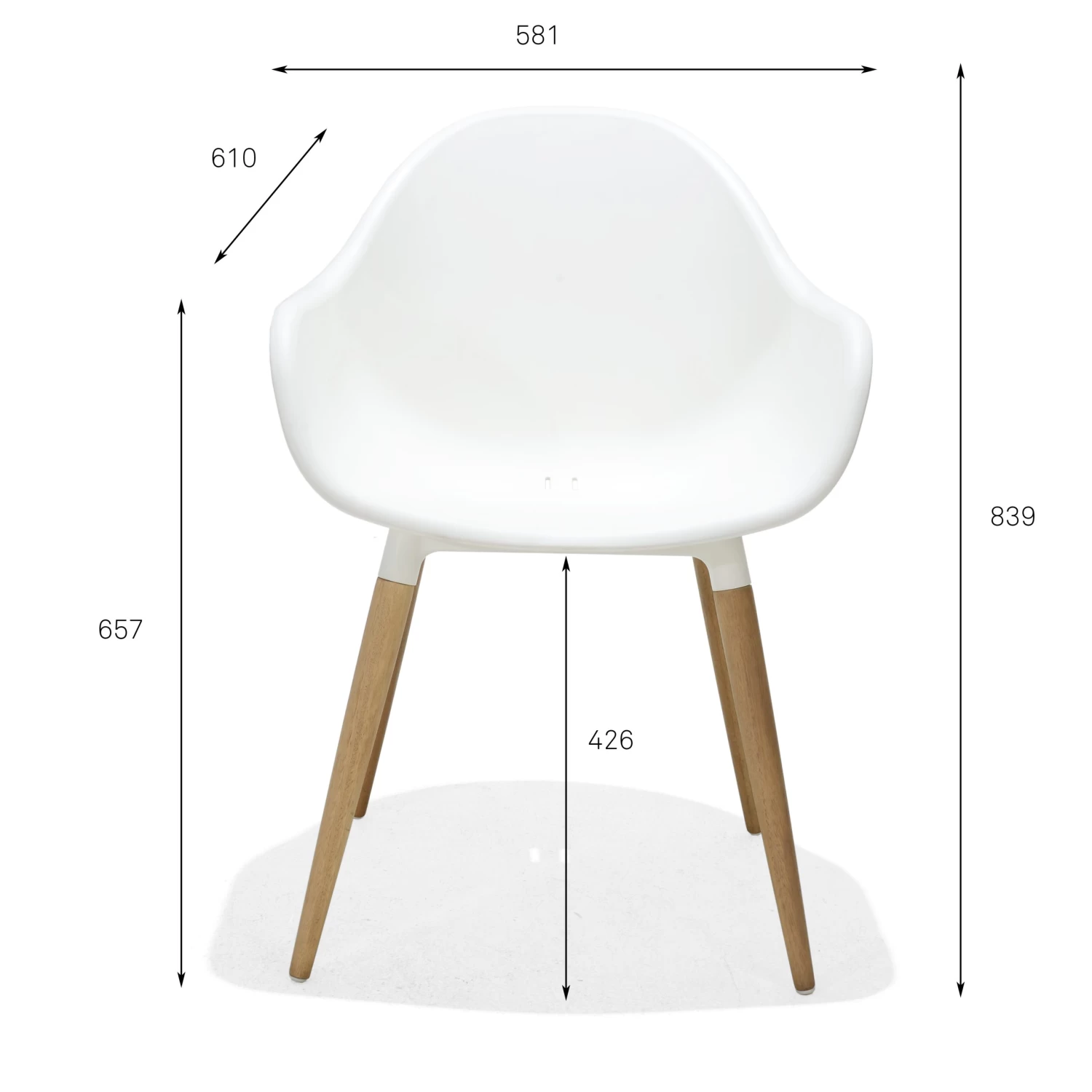 De Tuinstoel Odense wit is een moderne hippe kuipstoel. Het zitgedeelte is gemaakt van kunststof en de poten van teakhout. De combinatie van de materialen zorgt voor een moderne look. De speciale materialen helpen verkleuring door UV-stralen te voorkomen. Óók is de stoel weerbestendig waardoor deze zowel te gebruiken is voor buiten en binnen.